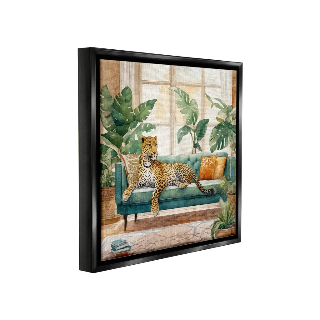 Elevate your home or office to the next level with Stupell Framed Floating Canvas Wall Art. Our premium hand-stretched canvas is mounted securely into a sturdy lightweight frame. The museum-style gap between the wrapped canvas and the box frame gives the illusion of floating artwork. Stupell Wall Art is made in the USA.Features: Dimensions: 18 x 1.7 x 18 Frame, 17 x 1.5 x 17 Canvas ArtFloating Frame Canvas Products are available in sizes 18"x18" and 25"x25". All Floating Frame Canvas Products have a 1.7" Depth.Wall Art is Ready to Hang with Hardware Free Hanging. No Installation required. For Easy Set Up Lean or Layer Artwork on Shelf or Against Wall. Artwork is Permently Fixed into the Frame.Our elevated 1.7" Thick Floating Frame is the perfect complement to our canvas style Wall Art. We use only the highest quality inks in house with industry leading printing solutions. Canvas is hand stretched over a durable wood foundation and then mounted securly into a Modern Box Frame. Made in the USA.Artwork Relates To: Animal, Mammal, Cheetah, Wildlife, Cushion, Leopard, Plant, Botanical, Monstera, TropicalDesign by Kim Allen