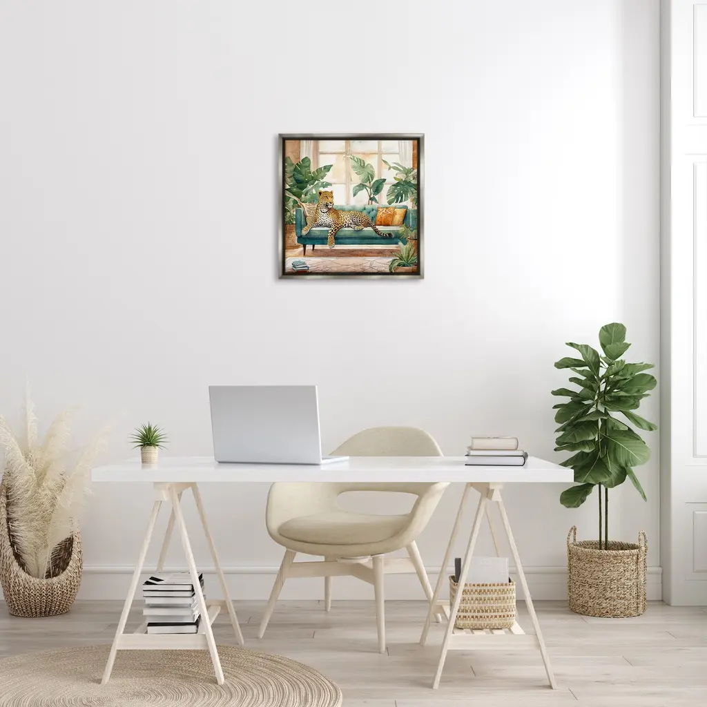 Elevate your home or office to the next level with Stupell Framed Floating Canvas Wall Art. Our premium hand-stretched canvas is mounted securely into a sturdy lightweight frame. The museum-style gap between the wrapped canvas and the box frame gives the illusion of floating artwork. Stupell Wall Art is made in the USA.Features: Dimensions: 18 x 1.7 x 18 Frame, 17 x 1.5 x 17 Canvas ArtFloating Frame Canvas Products are available in sizes 18"x18" and 25"x25". All Floating Frame Canvas Products have a 1.7" Depth.Wall Art is Ready to Hang with Hardware Free Hanging. No Installation required. For Easy Set Up Lean or Layer Artwork on Shelf or Against Wall. Artwork is Permently Fixed into the Frame.Our elevated 1.7" Thick Floating Frame is the perfect complement to our canvas style Wall Art. We use only the highest quality inks in house with industry leading printing solutions. Canvas is hand stretched over a durable wood foundation and then mounted securly into a Modern Box Frame. Made in the USA.Artwork Relates To: Animal, Mammal, Cheetah, Wildlife, Cushion, Leopard, Plant, Botanical, Monstera, TropicalDesign by Kim Allen