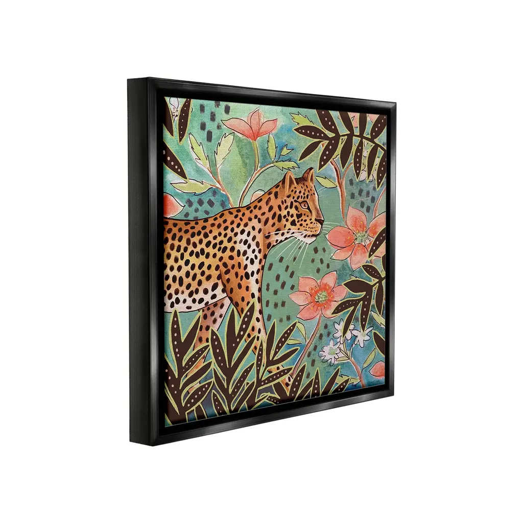 Elevate your home or office to the next level with Stupell Framed Floating Canvas Wall Art. Our premium hand-stretched canvas is mounted securely into a sturdy lightweight frame. The museum-style gap between the wrapped canvas and the box frame gives the illusion of floating artwork. Stupell Wall Art is made in the USA.Features: Dimensions: 18 x 1.7 x 18 Frame, 17 x 1.5 x 17 Canvas ArtFloating Frame Canvas Products are available in sizes 18"x18" and 25"x25". All Floating Frame Canvas Products have a 1.7" Depth.Wall Art is Ready to Hang with Hardware Free Hanging. No Installation required. For Easy Set Up Lean or Layer Artwork on Shelf or Against Wall. Artwork is Permently Fixed into the Frame.Our elevated 1.7" Thick Floating Frame is the perfect complement to our canvas style Wall Art. We use only the highest quality inks in house with industry leading printing solutions. Canvas is hand stretched over a durable wood foundation and then mounted securly into a Modern Box Frame. Made in the USA.Artwork Relates To: Pattern, Animal, Wildlife, Mammal, Floral, Leopard, Cheetah, Plant, Botanical, Leaf, JungleDesign by Elizabeth Tyndall