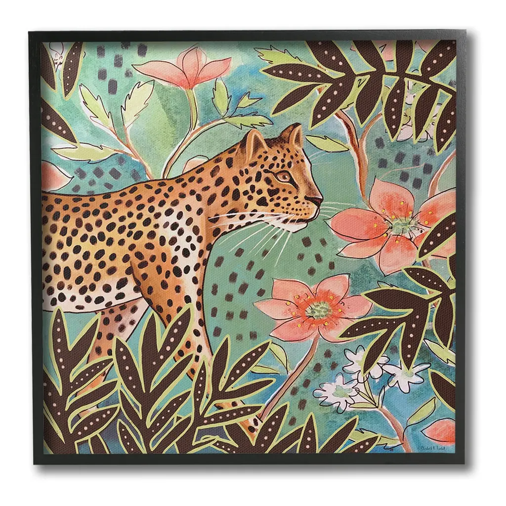 Add dimension to any room with our textured Framed Giclee Artwork. Our framed artwork is securely mounted into a 1.5-inch thick wood grain frame and ready to hang. Frames are available in three alluring styles: black, gray farmhouse and white. In addition, you should check out our oversized options if you want a statement piece. Stupell Wall Art is made in the USA.Features: Dimensions: 12 x 1.5 x 12 FramedFramed Giclee Product Sizes Include 12"x12", 17"x17", and 24"x24". Framed Giclee Products have a 1.5" Depth. Wall Art is Ready to Hang with Hardware Free Hanging. No installation required. For Easy Set Up Lean or Layer Artwork on Shelf or Against Wall.Our giclée prints are carefully mounted on a durable MDF backing, and then perfectly finished in a 1.5 inch thick woodgrain frame. Mounted frame colors include black, gray farmhouse and white. Made In USA.Artwork Relates To: Pattern, Animal, Wildlife, Mammal, Floral, Leopard, Cheetah, Plant, Botanical, Leaf, JungleDesign by Elizabeth Tyndall