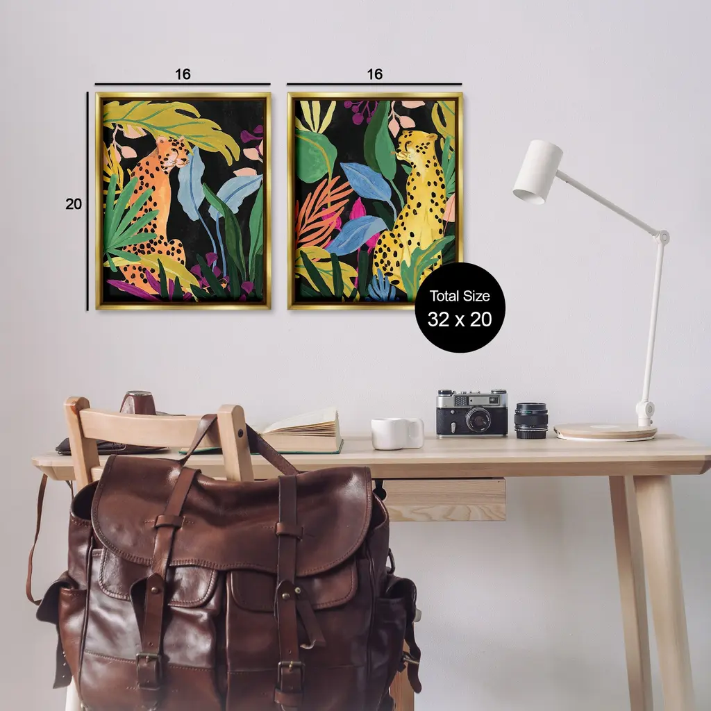 Elevate your home or office to the next level with Stupell Framed Floating Canvas Wall Art. Our premium hand-stretched canvas is mounted securely into a sturdy lightweight frame. The museum-style gap between the wrapped canvas and the box frame gives the illusion of floating artwork. Stupell Wall Art is made in the USA.Features: Dimensions: 2 Piece Set, Each Frame is 17 x 1.7 x 21Two Piece Floater Framed Canvas are available as 17x21 or 25x31 Panels. All Floater Frame Products have a 1.7" Depth.Wall Art is Ready to Hang with Hardware Free Hanging. No Installation required. For Easy Set Up Lean or Layer Artwork on Shelf or Against Wall. Artwork is Permently Fixed into the Frame.Our elevated 1.7" Thick Floating Frame is the perfect complement to our canvas style Wall Art. We use only the highest quality inks in house with industry leading printing solutions. Canvas is hand stretched over a durable wood foundation and then mounted securly into a Modern Box Frame. Made in the USA.Artwork Relates To: Plant, Vegetation, Animal, Cheetah, Mammal, Wildlife, Jungle, Nature, Botanical, Tropical, LeopardDesign by June Erica Vess
