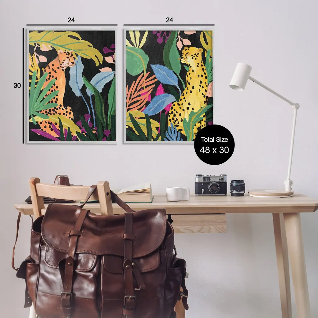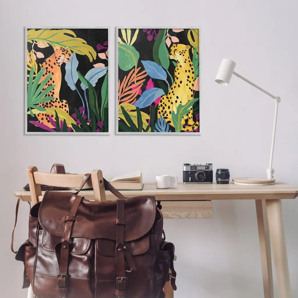Fill any space in your home or office with our Framed Wall Art Sets. Our framed artwork is securely mounted into a 1.5-inch thick wood grain frame and ready to hang. Frames are available in three alluring styles: black, gray farmhouse and white. Stupell Wall Art is made in the USA.Features: Dimensions: 2 Piece Set, Each Panel is 11 x 1.5 x 14 FramedTwo Piece Framed Giclee Sets are available as 11"x14", 16"x20" or 24"x30" Panels. All Framed Giclee Products have a 1.5" Depth.Wall Art is Ready to Hang with Hardware Free Hanging. No installation required. For Easy Set Up Lean or Layer Artwork on Shelf or Against Wall.Curated Wall Art Sets make it easy for you complete the theme for any room. Our giclée prints are carefully mounted on a durable MDF backing, and then perfectly finished in a 1.5 inch thick woodgrain frame. Mounted frame colors include black, gray farmhouse and white. Made In USA.Artwork Relates To: Plant, Vegetation, Animal, Cheetah, Mammal, Wildlife, Jungle, Nature, Botanical, Tropical, LeopardDesign by June Erica Vess