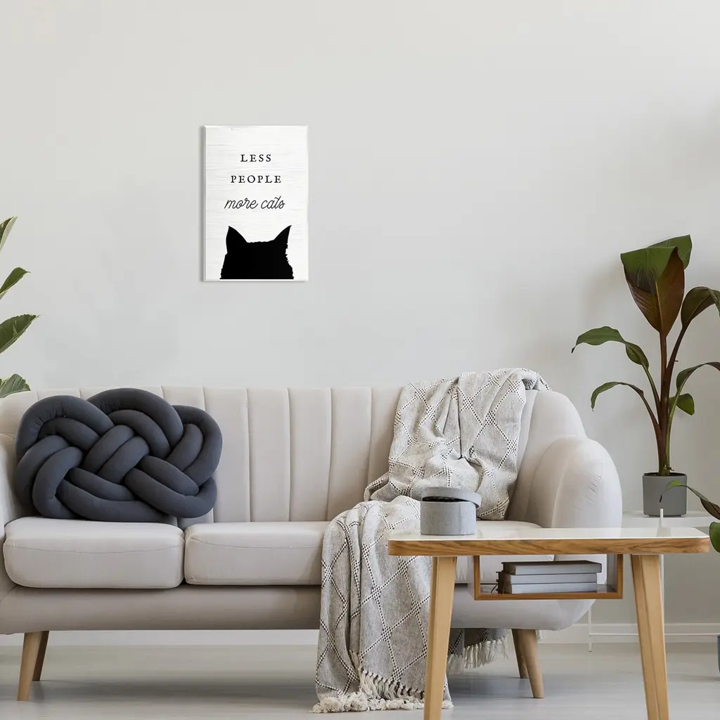 Our wall plaques start as high-quality lithograph prints mounted on durable 0.5-inch thick MDF wood. Each piece is hand finished and comes with a fresh layer of white foil on the sides to give it a crisp, clean look. Plaques arrive ready to hang without installation and come with removable plastic corners to keep them from damage in transit. Wall Art is made in the USA.Features: Dimensions: 10 x 0.5 x 15 InchesWall Plaque Sizes Include Standard: 10 x 0.5 x 15 Oversized: 13 x 0.5 x 19Wall Art is Ready to Hang with Hardware Free Hanging. No installation required. For Easy Set Up Lean or Layer Artwork on Shelf or Against Wall.All of our wall plaques start off as high quality lithograph prints that are then mounted on durable 0.5 inch thick MDF wood. Each piece is hand finished and comes with a fresh layer of foil on the sides to give it a crisp clean look. Made In USA.Artwork Relates To: Pet, Cat, Phrase, Humor, Silhouette, Less People More CatsDesign by Lil' Rue