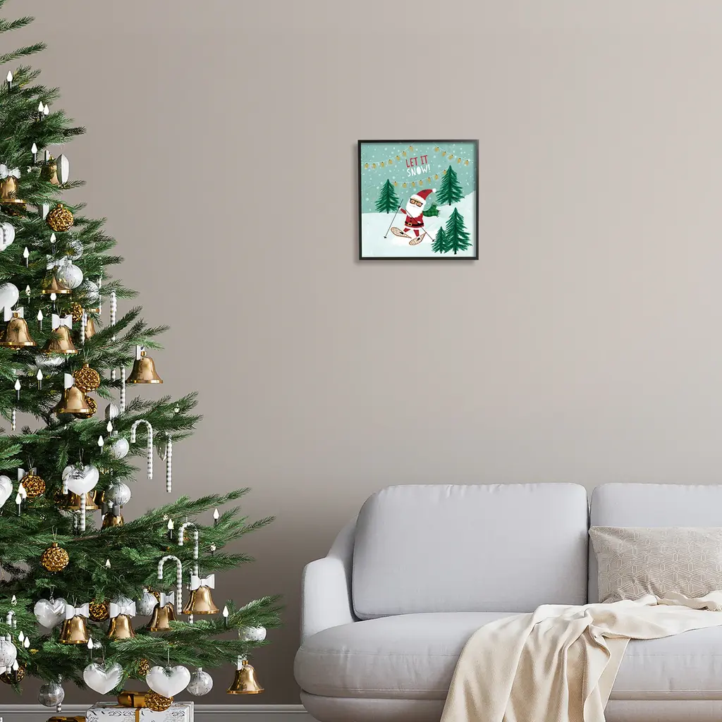 Stupell Let It Snow Santa Snowshoeing Framed Giclee Art By Pan Georgiou - 12 X 12 - White