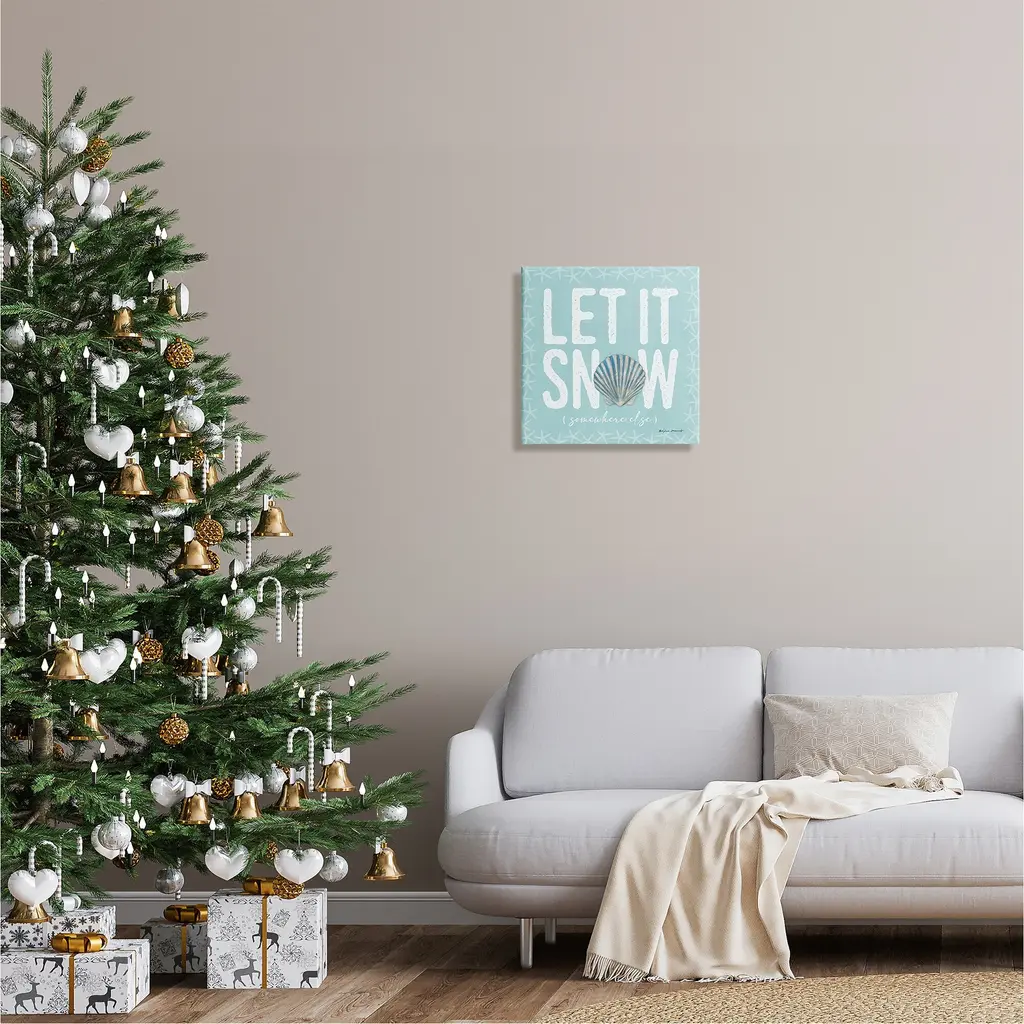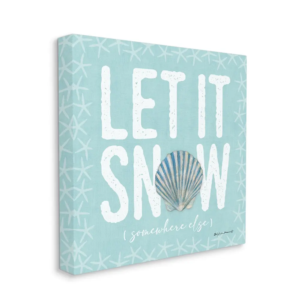 We create our stretched canvas to the highest standards. Using only the highest quality inks and canvas on Mimaki printers, we hand-cut and stretch each piece over a 1.5-inch thick wooden frame for hanging. As a result, the art comes ready to hang on the sturdy ledge with no installation required. Stupell Wall Art is made in the USA.Features: Dimensions: 17 x 1.5 x 17 InchesStretched Canvas Sizes Include Standard: 17 x 1.5 x 17 Large: 24 x 1.5 x 24 X-Large: 30 x 1.5 x 30 Oversized: 36 x 1.5 x 36Wall Art is Ready to Hang - No Installation or Hardware Needed. For Easy Set Up Lean or Layer Artwork on Shelf or Against Wall.Our stretched canvas is created with the highest standards. We use only the highest quality inks and canvas on our in house Mimaki printers, and then hand cut and stretch each piece over a 1.5 inch thick wooden frame for hanging. Made In USA.Artwork Relates To: Sea Life, Clam, Nautical, Starfish, Turquoise, Christmas, Holiday, Winter, Let It Snow Somewhere ElseDesign by Stephanie Workman Marrott