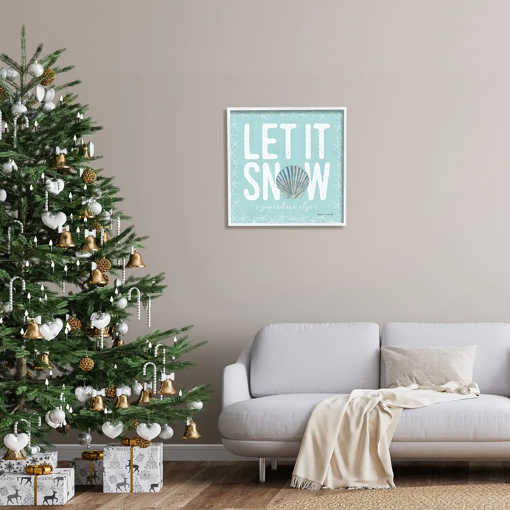 Add dimension to any room with our textured Framed Giclee Artwork. Our framed artwork is securely mounted into a 1.5-inch thick wood grain frame and ready to hang. Frames are available in three alluring styles: black, gray farmhouse and white. In addition, you should check out our oversized options if you want a statement piece. Stupell Wall Art is made in the USA.Features: Dimensions: 12 x 1.5 x 12 FramedFramed Giclee Sizes Include Standard: 12 x 1.5 x 12 Large: 17 x 1.5 x 17 Oversized: 24 x 1.5 x 24Wall Art is Ready to Hang - No Installation or Hardware Needed. For Easy Set Up Lean or Layer Artwork on Shelf or Against Wall.Our giclée prints are carefully mounted on a durable MDF backing, and then perfectly finished in a 1.5 inch thick woodgrain frame. Mounted frame colors include black, gray farmhouse and white. Made In USA.Artwork Relates To: Sea Life, Clam, Nautical, Starfish, Turquoise, Christmas, Holiday, Winter, Let It Snow Somewhere ElseDesign by Stephanie Workman Marrott