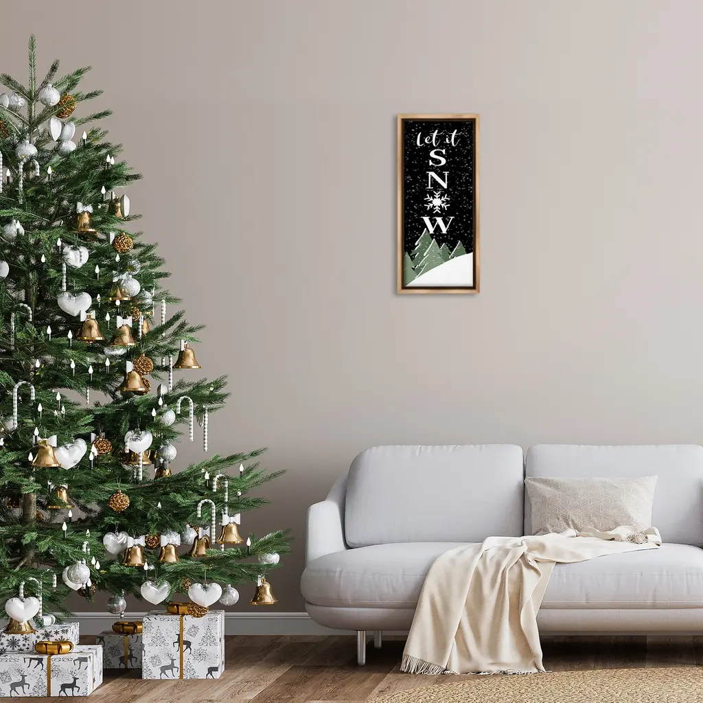 Stupell Let It Snow Winter Scene Framed Floater Canvas Wall Art Design By Susan Ball - 11 X 25 - Brown