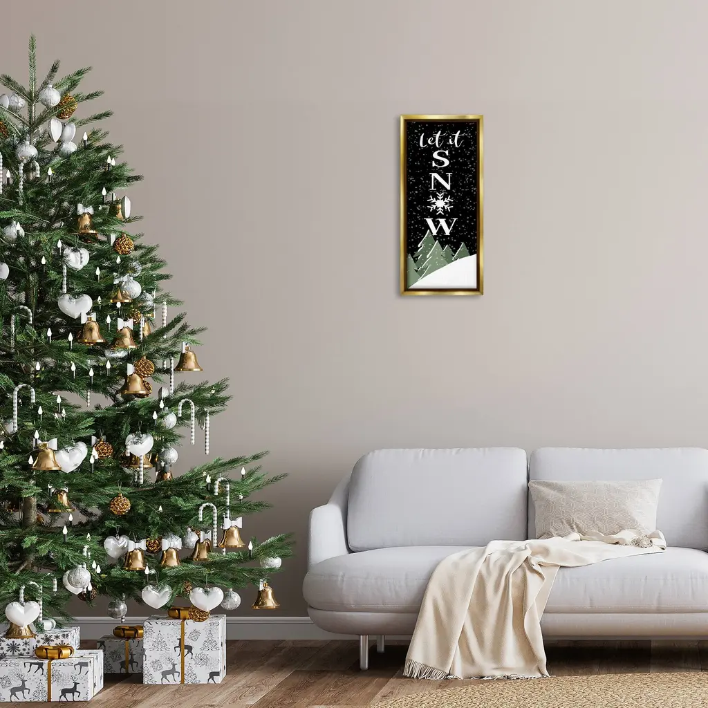 Stupell Let It Snow Winter Scene Framed Floater Canvas Wall Art Design By Susan Ball - 11 X 25 - Gold