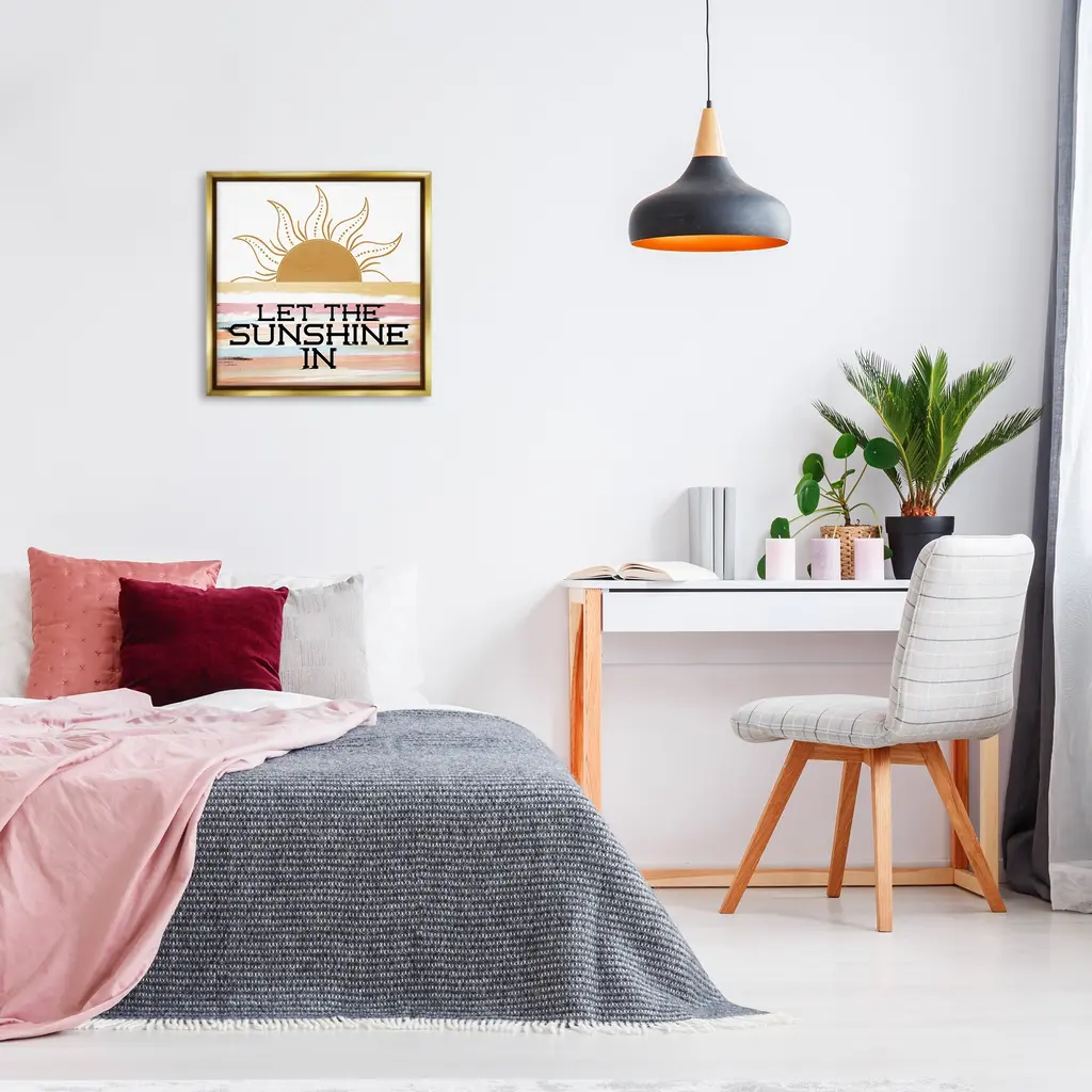 Elevate your home or office to the next level with Stupell Framed Floating Canvas Wall Art. Our premium hand-stretched canvas is mounted securely into a sturdy lightweight frame. The museum-style gap between the wrapped canvas and the box frame gives the illusion of floating artwork. Stupell Wall Art is made in the USA.Features: Dimensions: 18 x 1.7 x 18 Frame, 17 x 1.5 x 17 Canvas ArtFloating Frame Canvas Products are available in sizes 18"x18" and 25"x25". All Floating Frame Canvas Products have a 1.7" Depth.Wall Art is Ready to Hang with Hardware Free Hanging. No Installation required. For Easy Set Up Lean or Layer Artwork on Shelf or Against Wall. Artwork is Permently Fixed into the Frame.Our elevated 1.7" Thick Floating Frame is the perfect complement to our canvas style Wall Art. We use only the highest quality inks in house with industry leading printing solutions. Canvas is hand stretched over a durable wood foundation and then mounted securly into a Modern Box Frame. Made in the USA.Artwork Relates To: Sun, Rays, Beach, Ocean, Sea, Inspirational, Abstract, Let The Sunshine InDesign by Kim Allen