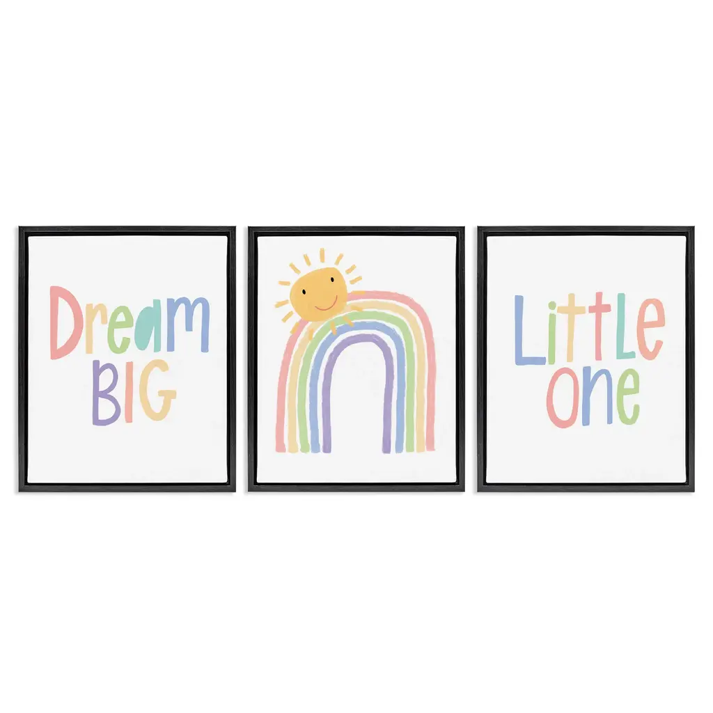 Elevate your home or office to the next level with Stupell Framed Floating Canvas Wall Art. Our premium hand-stretched canvas is mounted securely into a sturdy lightweight frame. The museum-style gap between the wrapped canvas and the box frame gives the illusion of floating artwork. Stupell Wall Art is made in the USA.Features: Dimensions: 3 Piece Set, Each Frame is 17 x 1.7 x 21Three Piece Floater Framed Canvas are available as 17x21 or 25x31 Panels. All Floater Frame Products have a 1.7" Depth.Wall Art is Ready to Hang with Hardware Free Hanging. No Installation required. For Easy Set Up Lean or Layer Artwork on Shelf or Against Wall. Artwork is Permently Fixed into the Frame.Our elevated 1.7" Thick Floating Frame is the perfect complement to our canvas style Wall Art. We use only the highest quality inks in house with industry leading printing solutions. Canvas is hand stretched over a durable wood foundation and then mounted securly into a Modern Box Frame. Made in the USA.Artwork Relates To: Fantasy, Unicorn, Flower, Floral, Nature, Rainbow, PhraseDesign by Jenaya Jackson