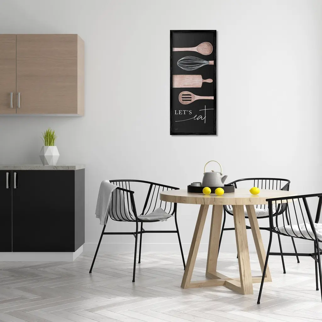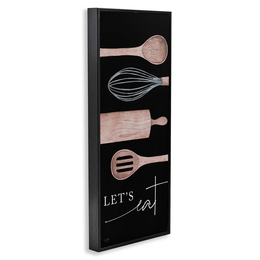 Stupell Let's Eat Varied Kitchen Cooking Utensil Phrase Framed Wall Art, Design By Lux + Me Designs - 13 X 30 - Black