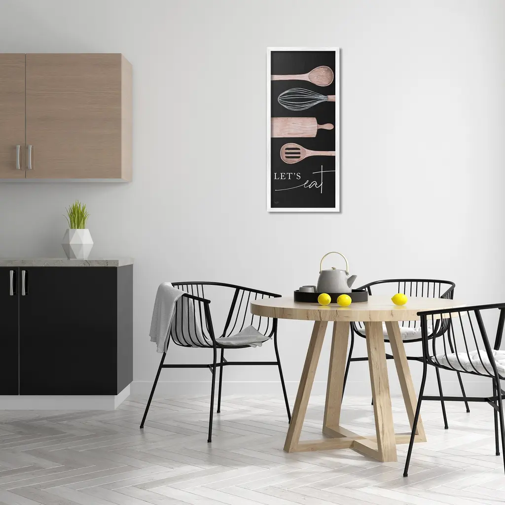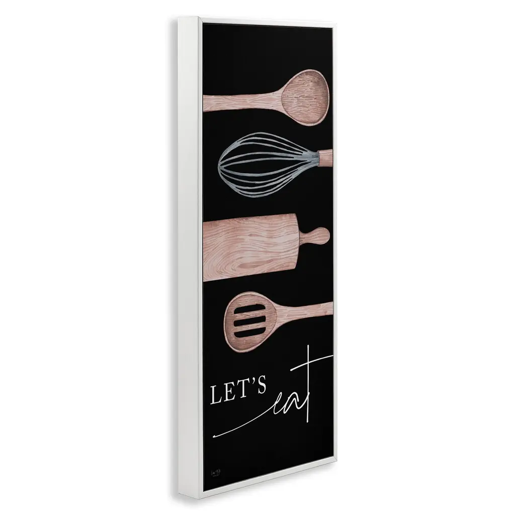 Stupell Let's Eat Varied Kitchen Cooking Utensil Phrase Framed Wall Art, Design By Lux + Me Designs - 13 X 30 - White