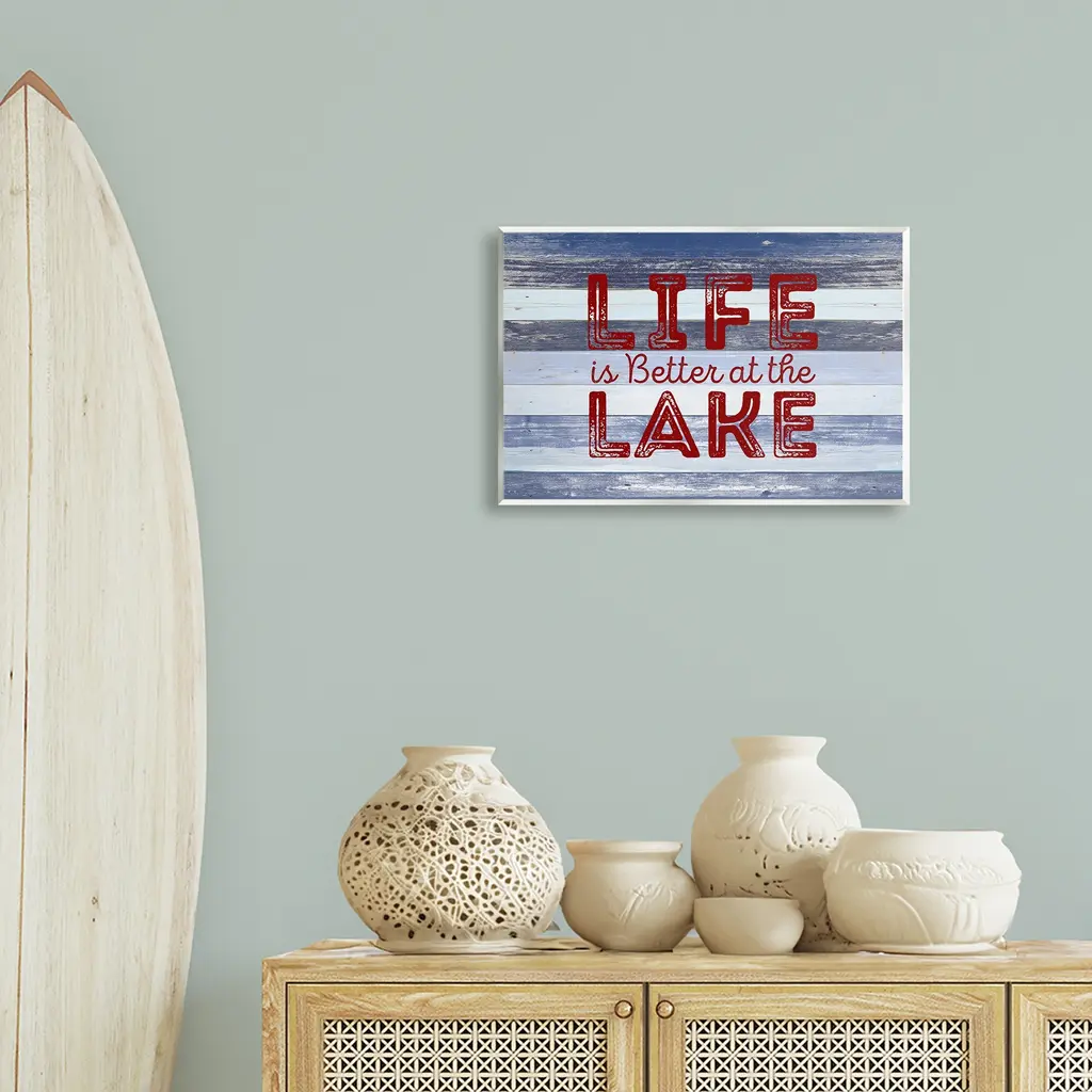 Stupell Life At Lake Striped Wall Plaque Art Design By Sd Graphics Studio - 19 X 13