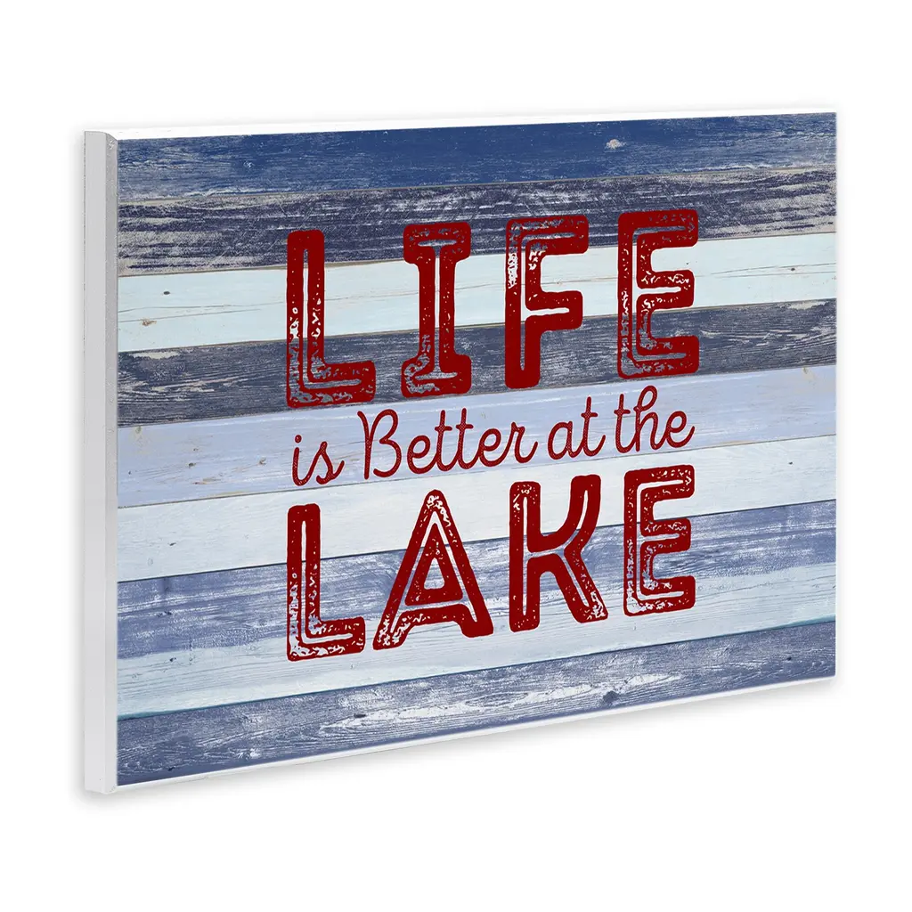 Our wall plaques start as high-quality lithograph prints mounted on durable 0.5-inch thick MDF wood. Each piece is hand finished and comes with a fresh layer of white foil on the sides to give it a crisp, clean look. Plaques arrive ready to hang without installation and come with removable plastic corners to keep them from damage in transit. Stupell Wall Art is made in the USA.Features: Dimensions: 15 x 0.5 x 10 InchesWall Plaque Product Sizes Include 15"x10" and 19"x13". All wall plaque products have a 0.5" Depth. Wall Art is Ready to Hang with Hardware Free Hanging. No installation required. For Easy Set Up Lean or Layer Artwork on Shelf or Against Wall.All of our wall plaques start off as high quality lithograph prints that are then mounted on durable 0.5 inch thick MDF wood. Each piece is hand finished and comes with a fresh layer of foil on the sides to give it a crisp clean look. Made In USA.Artwork Relates To: Lake House, Nautical, Maritime, Beach, Water, Phrase, Stripes, PatternDesign by Sd Graphics Studio