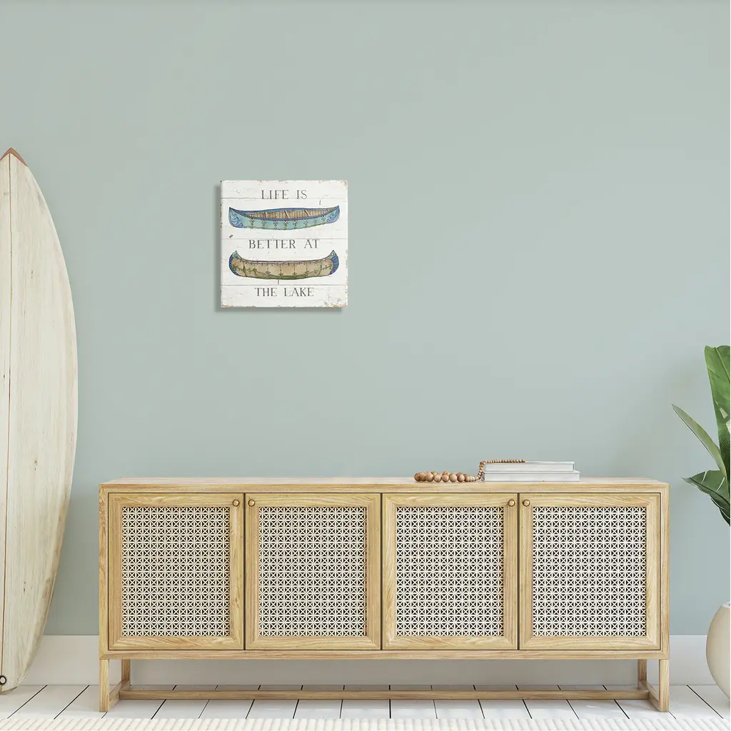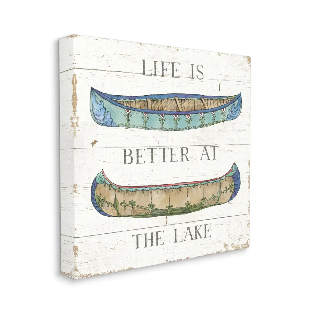Stupell Life Better At Lake Weathered Canoes Stretched Canvas Wall Art, Design By Daphne Brissonnet - 17 X 17