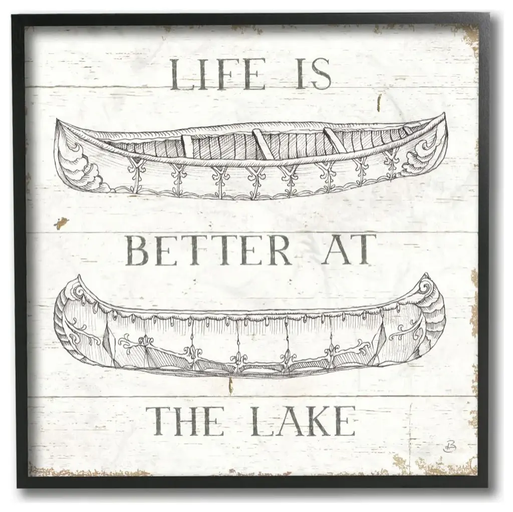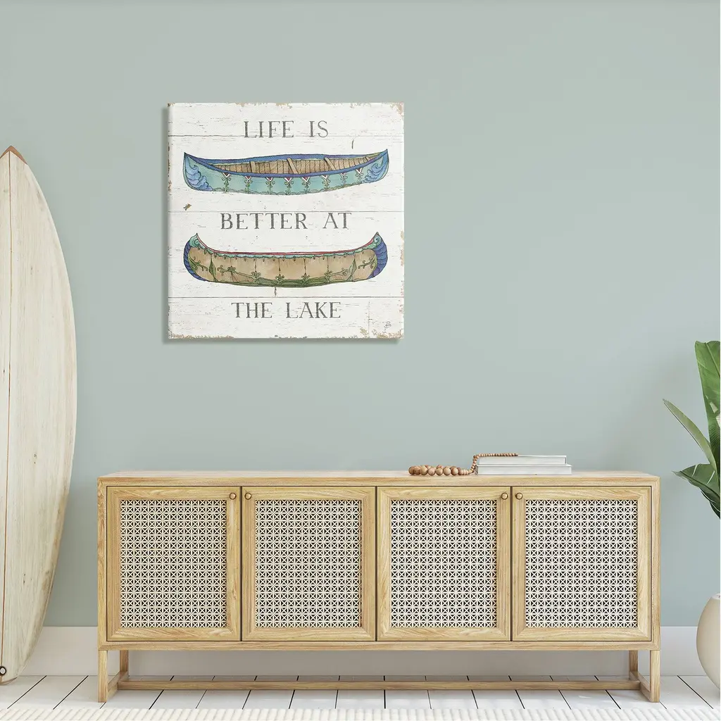 Stupell Life Better At Lake Weathered Canoes Stretched Canvas Wall Art, Design By Daphne Brissonnet - 30 X 30
