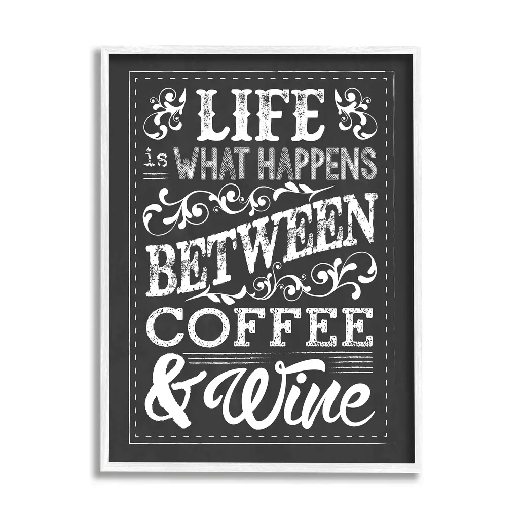 Stupell Life, Between Coffee And Wine Chalk Framed Giclee Texturized Art By Melody Hogan - 11 X 14 - Grey
