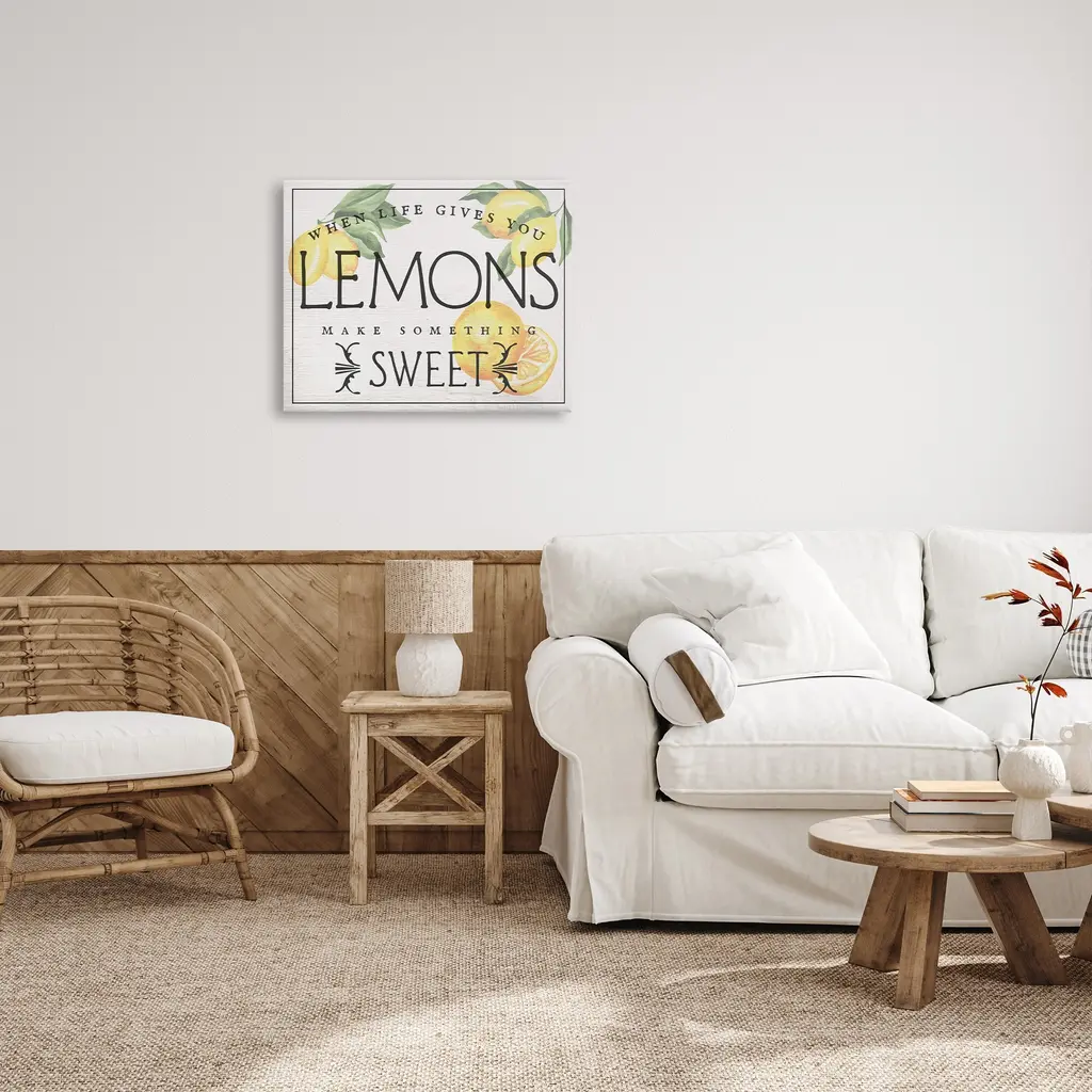 Proudly made in the USA, Our stretched canvas is created with the highest standards. We use only the highest quality inks and canvas on our in house Mimaki printers, and then hand cut and stretch each piece over a 1.5 inch thick wooden frame for hanging. The art comes ready to hang with no installation required. Not to mention, at this size, it is sure to be the focal point of any room!Features: Wall Art is Ready to Hang - No Installation or Hardware Needed. For Easy Set Up Lean or Layer Artwork on Shelf or Against Wall.Our stretched canvas is created with the highest standards. We use only the highest quality inks and canvas on our in house Mimaki printers, and then hand cut and stretch each piece over a 1.5 inch thick wooden frame for hanging. Made In USA.Artwork Relates To: Lemons, Citrus, Phrase, TypographyDesign by Daphne Polselli