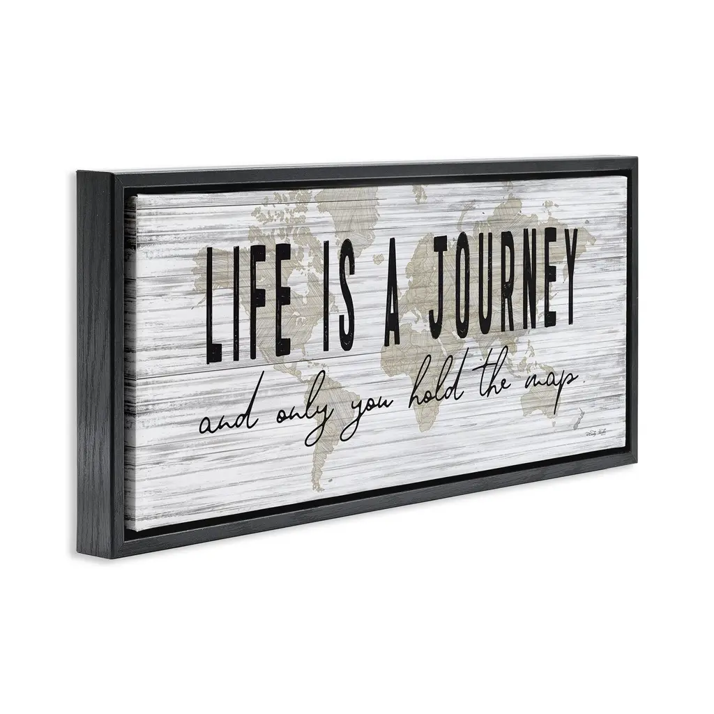 Stupell Life Is A Journey Rustic World Map Framed Floater Canvas Wall Art Design By Cindy Jacobs - 25 X 11 - Black