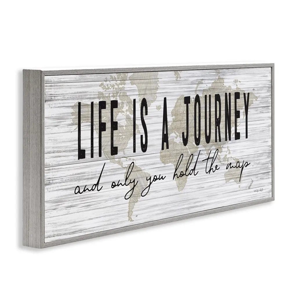Stupell Life Is A Journey Rustic World Map Framed Wall Art, Design By Cindy Jacobs - Grey - 24 X 10 - Grey