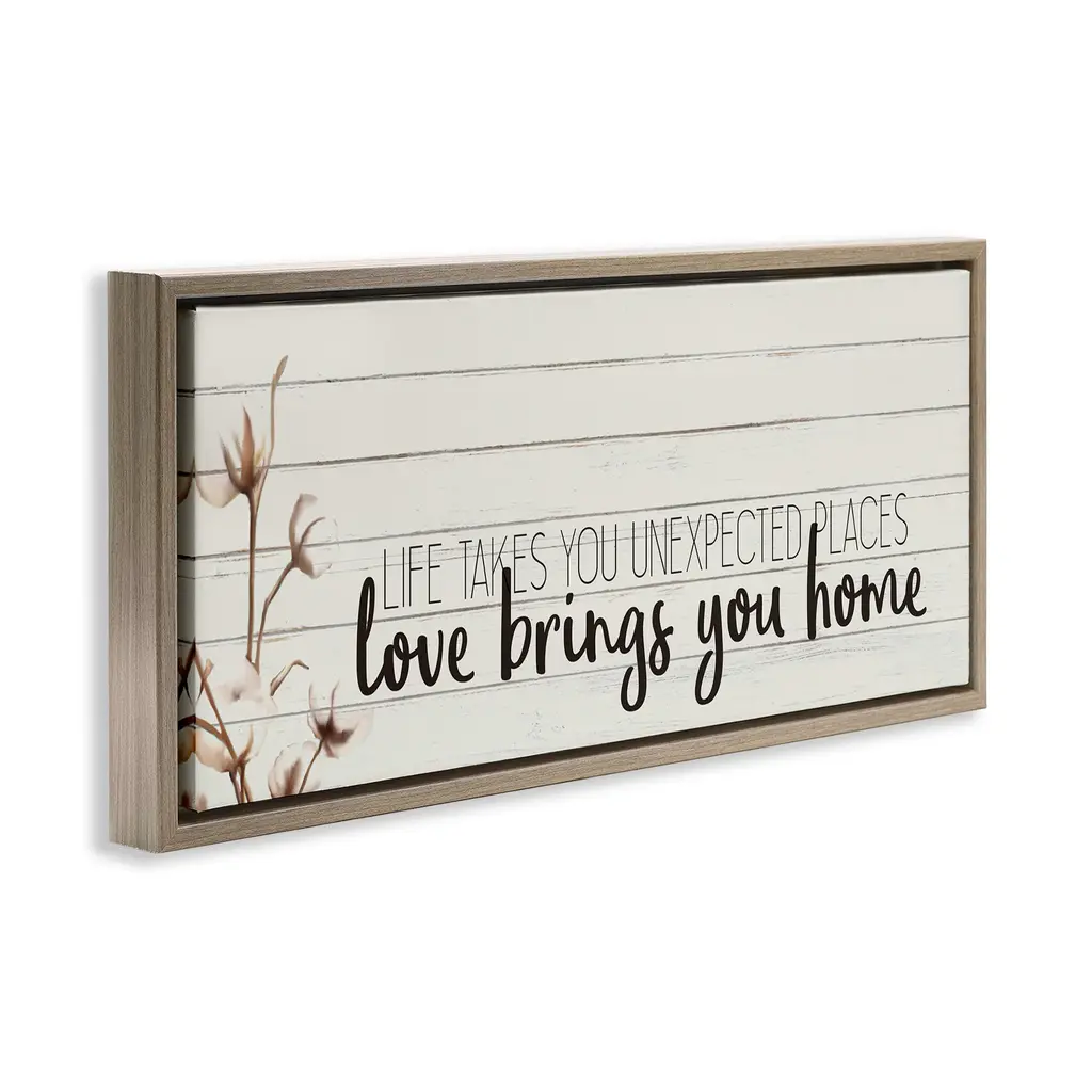 Elevate your home or office to the next level with Stupell Framed Floating Canvas Wall Art. Our premium hand-stretched canvas is mounted securely into a sturdy lightweight frame. The museum-style gap between the wrapped canvas and the box frame gives the illusion of floating artwork. Stupell Wall Art is made in the USA.Features: Dimensions: 25 x 1.7 x 11 Frame, 24 x 1.5 x 10 Canvas ArtFloating Frame Canvas Products are available in sizes 25"x11" and 31"x14". All Floating Frame Canvas Products have a 1.7" Depth.Wall Art is Ready to Hang with Hardware Free Hanging. No Installation required. For Easy Set Up Lean or Layer Artwork on Shelf or Against Wall. Artwork is Permently Fixed into the Frame.Our elevated 1.7" Thick Floating Frame is the perfect complement to our canvas style Wall Art. We use only the highest quality inks in house with industry leading printing solutions. Canvas is hand stretched over a durable wood foundation and then mounted securly into a Modern Box Frame. Made in the USA.Artwork Relates To: Rustic, Phrase, Family, LoveDesign by Kim Allen