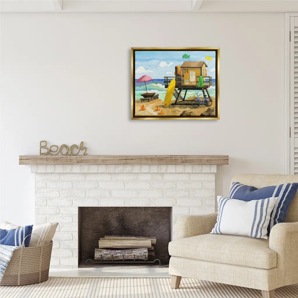 Stupell Lifeguard Hut On Beach Framed Floater Canvas Wall Art Design By Robin Altman - 31 X 25 - Gold