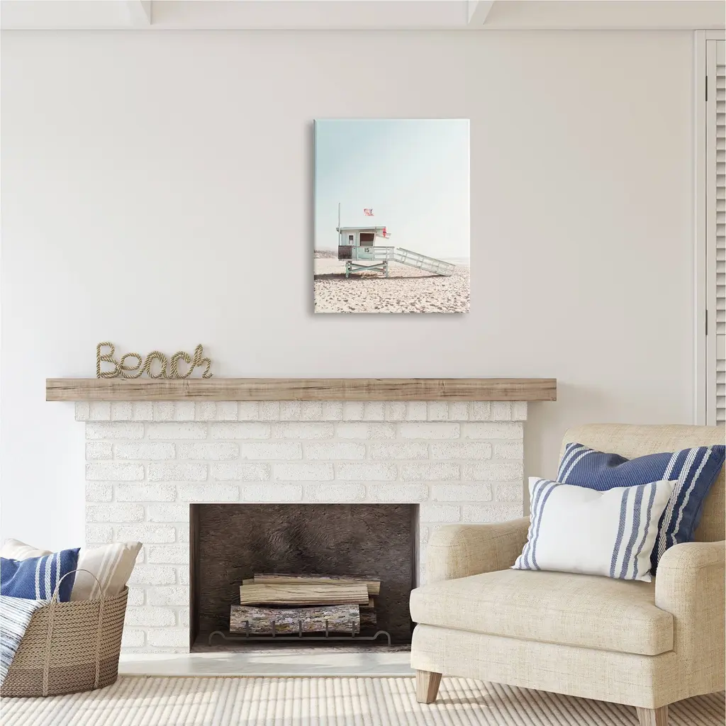 We create our stretched canvas to the highest standards. Using only the highest quality inks and canvas on Mimaki printers, we hand-cut and stretch each piece over a 1.5-inch thick wooden frame for hanging. As a result, the art comes ready to hang on the sturdy ledge with no installation required. Stupell Wall Art is made in the USA.Features: Dimensions: 16 x 1.5 x 20 InchesStretched Canvas Sizes Include Standard: 16 x 1.5 x 20 Large: 20 x 1.5 x 30 X-Large: 30 x 1.5 x 40 Oversized: 36 x 1.5 x 48Wall Art is Ready to Hang with Hardware Free Hanging. No installation required. For Easy Set Up Lean or Layer Artwork on Shelf or Against Wall.Our stretched canvas is created with the highest standards. We use only the highest quality inks and canvas on our in house Mimaki printers, and then hand cut and stretch each piece over a 1.5 inch thick wooden frame for hanging. Made In USA.Artwork Relates To: Beach, Lifeguard Hut, Sand, Photography, Beach, Coast, Shore, SummerDesign by Sisi and Seb