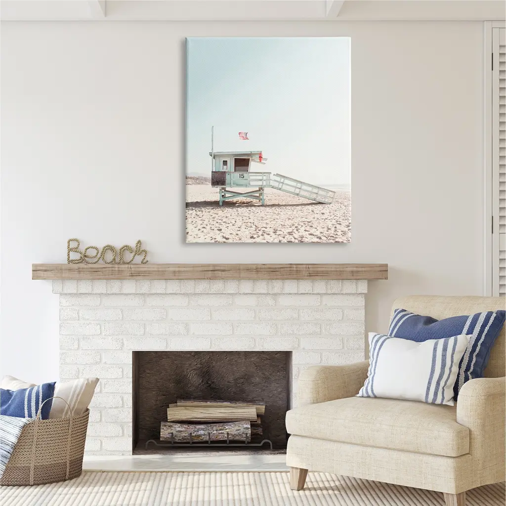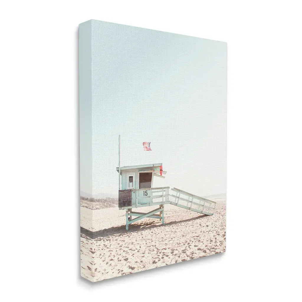 We create our stretched canvas to the highest standards. Using only the highest quality inks and canvas on Mimaki printers, we hand-cut and stretch each piece over a 1.5-inch thick wooden frame for hanging. As a result, the art comes ready to hang on the sturdy ledge with no installation required. Stupell Wall Art is made in the USA.Features: Dimensions: 16 x 1.5 x 20 InchesStretched Canvas Sizes Include Standard: 16 x 1.5 x 20 Large: 20 x 1.5 x 30 X-Large: 30 x 1.5 x 40 Oversized: 36 x 1.5 x 48Wall Art is Ready to Hang with Hardware Free Hanging. No installation required. For Easy Set Up Lean or Layer Artwork on Shelf or Against Wall.Our stretched canvas is created with the highest standards. We use only the highest quality inks and canvas on our in house Mimaki printers, and then hand cut and stretch each piece over a 1.5 inch thick wooden frame for hanging. Made In USA.Artwork Relates To: Beach, Lifeguard Hut, Sand, Photography, Beach, Coast, Shore, SummerDesign by Sisi and Seb