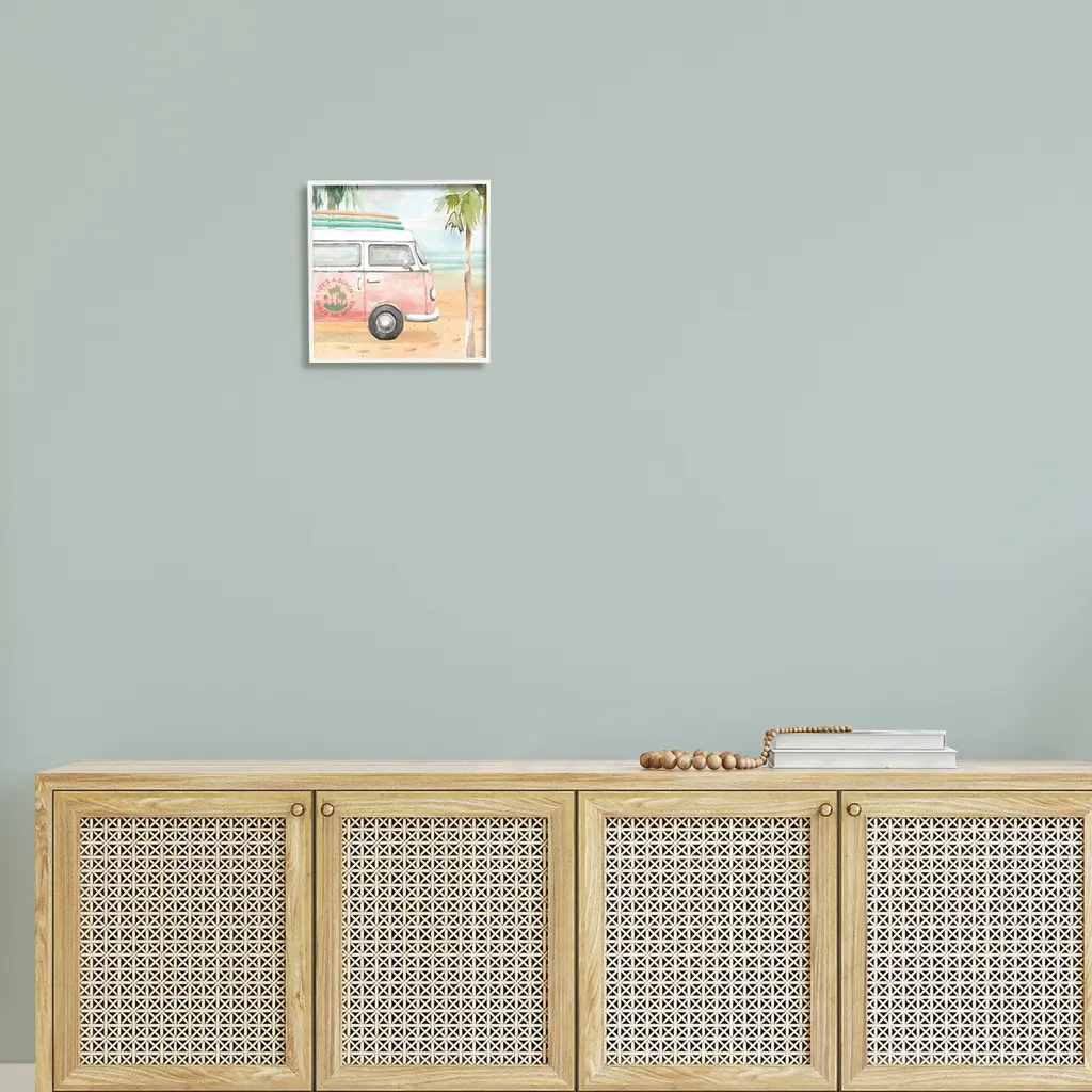 Stupell Life's A Beach Pink Surf Van Framed Giclee Texturized Wall Art, Design By Dina June - 12 X 12 - White