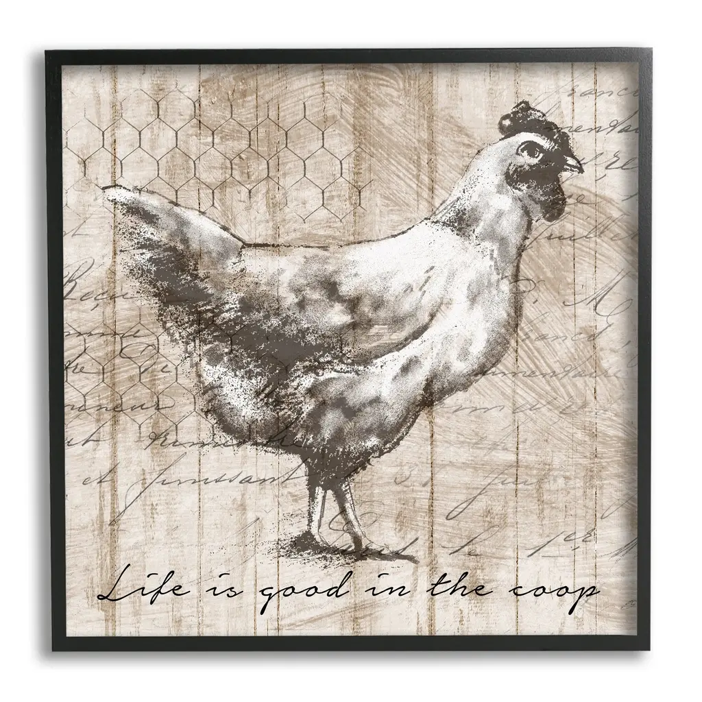 Stupell Life's Good In Coop Vintage Text Farm Chicken Framed Wall Art - Beige - 12 X 12 - White