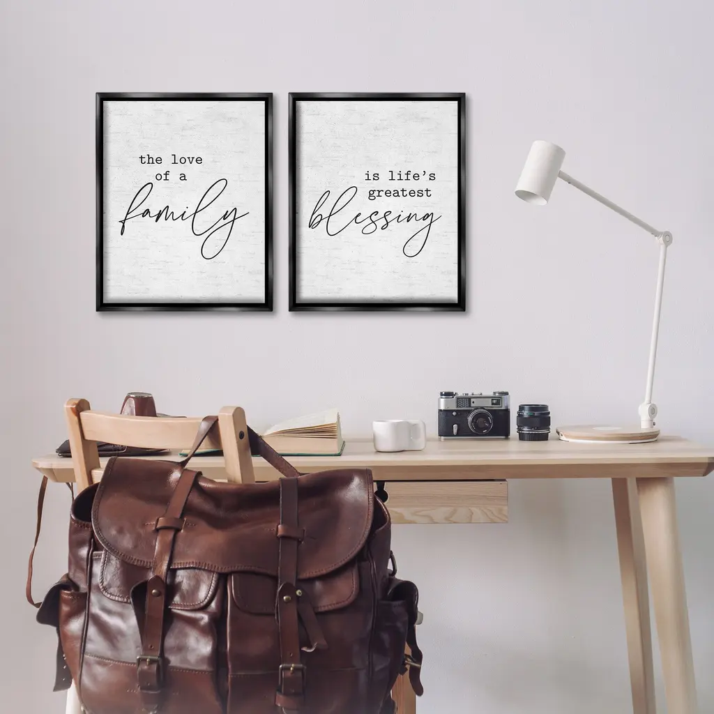 Stupell Life's Greatest Blessing Quote Framed Floater Canvas Wall Art Design By Lettered And Lined (Set Of 2) - 17 X 21 - Black