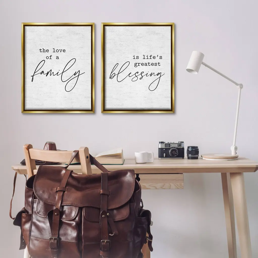 Stupell Life's Greatest Blessing Quote Framed Floater Canvas Wall Art Design By Lettered And Lined (Set Of 2) - 25 X 31 - Gold