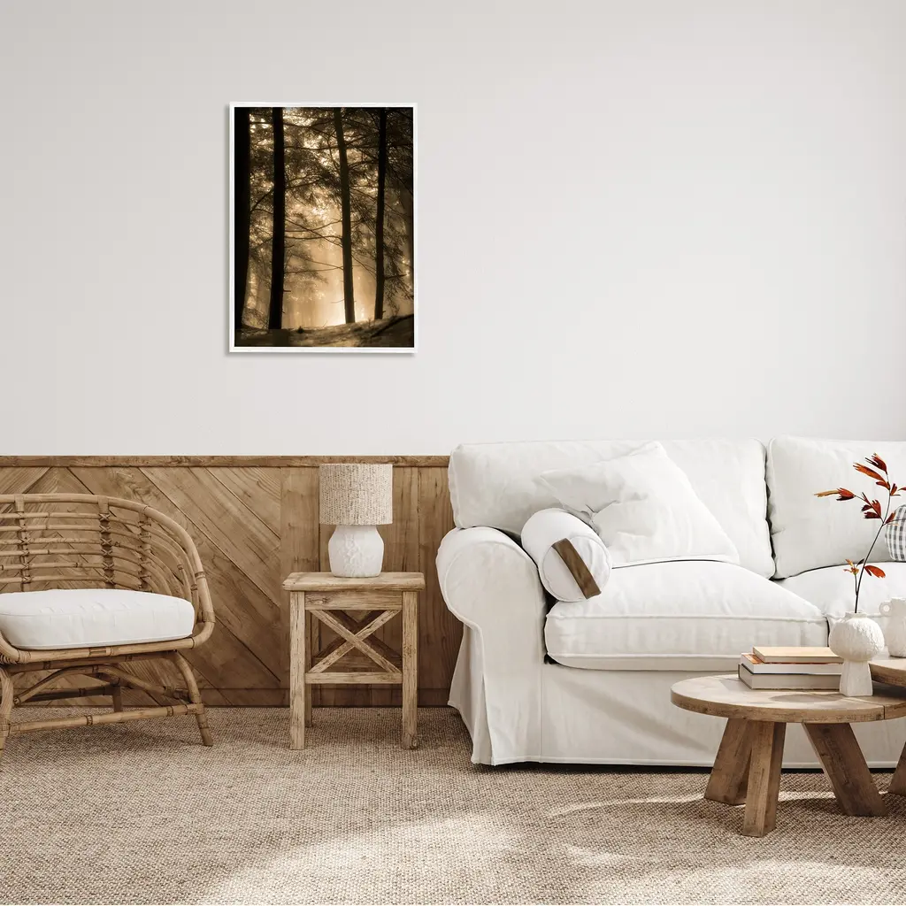 Stupell Light Through Forest Tree Top Foggy Woodland Photography Framed Wall Art - Yellow - 24 X 30 - White