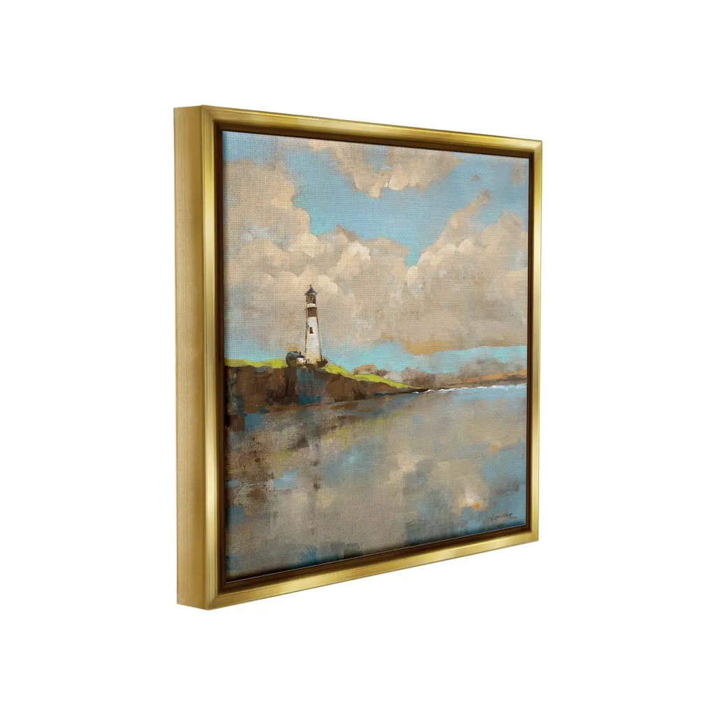 Stupell Lighthouse & Clouds Reflection Framed Floater Canvas Wall Art Design By Trevor Copenhaver - 18 X 18 - Gold