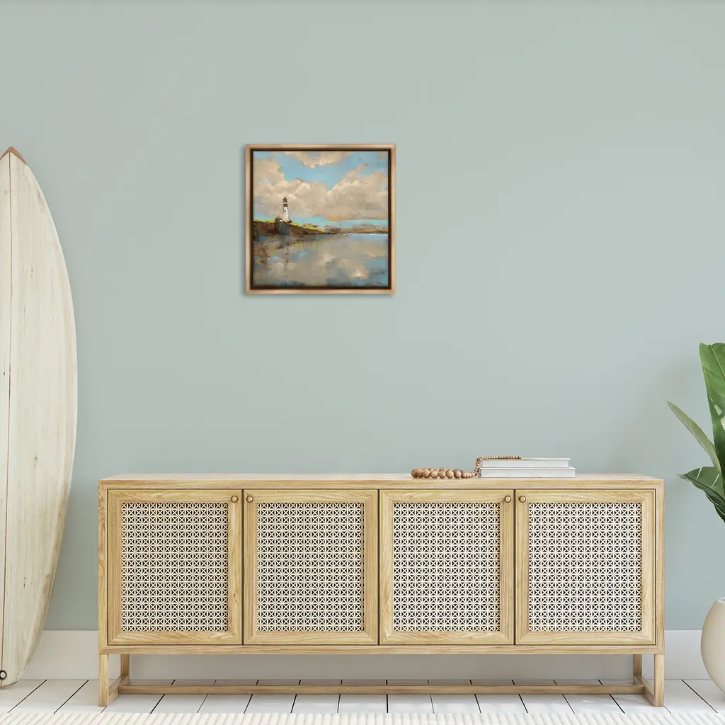 Elevate your home or office to the next level with Stupell Framed Floating Canvas Wall Art. Our premium hand-stretched canvas is mounted securely into a sturdy lightweight frame. The museum-style gap between the wrapped canvas and the box frame gives the illusion of floating artwork. Stupell Wall Art is made in the USA.Features: Dimensions: 18 x 1.7 x 18 Frame, 17 x 1.5 x 17 Canvas ArtFloating Frame Canvas Products are available in sizes 18"x18" and 25"x25". All Floating Frame Canvas Products have a 1.7" Depth.Wall Art is Ready to Hang with Hardware Free Hanging. No Installation required. For Easy Set Up Lean or Layer Artwork on Shelf or Against Wall. Artwork is Permently Fixed into the Frame.Our elevated 1.7" Thick Floating Frame is the perfect complement to our canvas style Wall Art. We use only the highest quality inks in house with industry leading printing solutions. Canvas is hand stretched over a durable wood foundation and then mounted securly into a Modern Box Frame. Made in the USA.Artwork Relates To: Nature, Water, Sea, Painting, Shoreline, Coast, Beach, Scenery, Landscape, Sea Waves, Lighthouse, Beacon, CloudsDesign by Trevor Copenhaver