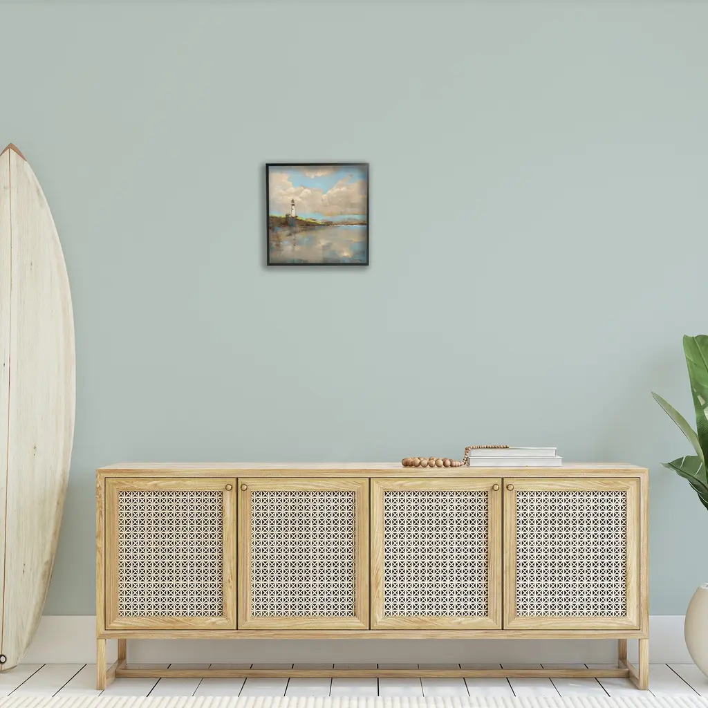 Add dimension to any room with our textured Framed Giclee Artwork. Our framed artwork is securely mounted into a 1.5-inch thick wood grain frame and ready to hang. Frames are available in three alluring styles: black, gray farmhouse and white. In addition, you should check out our oversized options if you want a statement piece. Stupell Wall Art is made in the USA.Features: Dimensions: 12 x 1.5 x 12 FramedFramed Giclee Product Sizes Include 12"x12", 17"x17", and 24"x24". Framed Giclee Products have a 1.5" Depth. Wall Art is Ready to Hang with Hardware Free Hanging. No installation required. For Easy Set Up Lean or Layer Artwork on Shelf or Against Wall.Our giclée prints are carefully mounted on a durable MDF backing, and then perfectly finished in a 1.5 inch thick woodgrain frame. Mounted frame colors include black, gray farmhouse and white. Made In USA.Artwork Relates To: Nature, Water, Sea, Painting, Shoreline, Coast, Beach, Scenery, Landscape, Sea Waves, Lighthouse, Beacon, CloudsDesign by Trevor Copenhaver