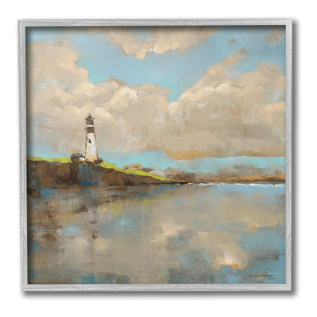 Add dimension to any room with our textured Framed Giclee Artwork. Our framed artwork is securely mounted into a 1.5-inch thick wood grain frame and ready to hang. Frames are available in three alluring styles: black, gray farmhouse and white. In addition, you should check out our oversized options if you want a statement piece. Stupell Wall Art is made in the USA.Features: Dimensions: 12 x 1.5 x 12 FramedFramed Giclee Product Sizes Include 12"x12", 17"x17", and 24"x24". Framed Giclee Products have a 1.5" Depth. Wall Art is Ready to Hang with Hardware Free Hanging. No installation required. For Easy Set Up Lean or Layer Artwork on Shelf or Against Wall.Our giclée prints are carefully mounted on a durable MDF backing, and then perfectly finished in a 1.5 inch thick woodgrain frame. Mounted frame colors include black, gray farmhouse and white. Made In USA.Artwork Relates To: Nature, Water, Sea, Painting, Shoreline, Coast, Beach, Scenery, Landscape, Sea Waves, Lighthouse, Beacon, CloudsDesign by Trevor Copenhaver