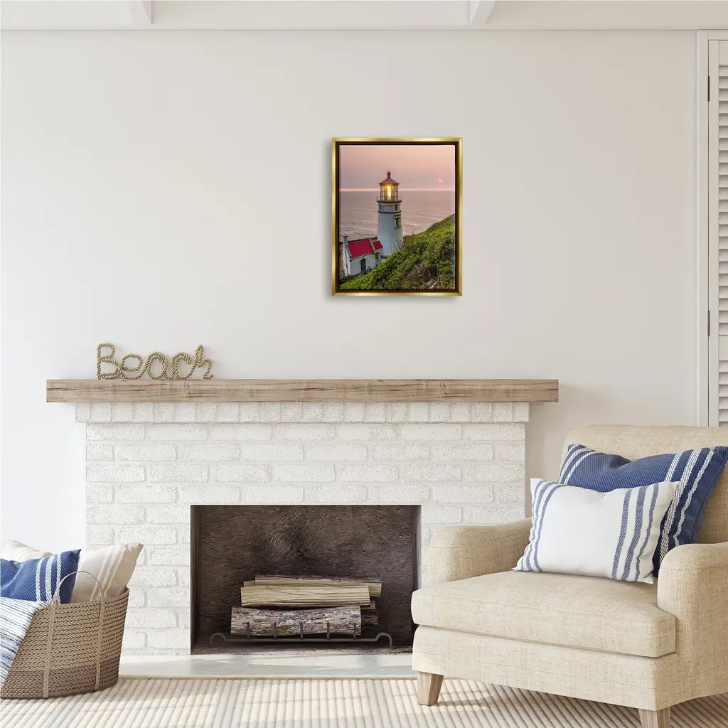 Elevate your home or office to the next level with Stupell Framed Floating Canvas Wall Art. Our premium hand-stretched canvas is mounted securely into a sturdy lightweight frame. The museum-style gap between the wrapped canvas and the box frame gives the illusion of floating artwork. Stupell Wall Art is made in the USA.Features: Dimensions: 17 x 1.7 x 21 Frame, 16 x 1.5 x 20 Canvas ArtFloating Frame Sizes Include Standard: 17 x 1.7 x 21 Oversized: 25 x 1.7 x 31Wall Art is Ready to Hang with Hardware Free Hanging. No installation required. For Easy Set Up Lean or Layer Artwork on Shelf or Against Wall.Our elevated 1.7" Thick Floating Frame is the perfect complement to our canvas style Wall Art. We use only the highest quality inks in house with industry leading printing solutions. Canvas is hand stretched over a durable wood foundation and then mounted securly into a Modern Box Frame. Made in the USA.Artwork Relates To: Beacon, Lighthouse, Nautical, Ocean, Sea, Beach, PhotographyDesign by Jeff Poe