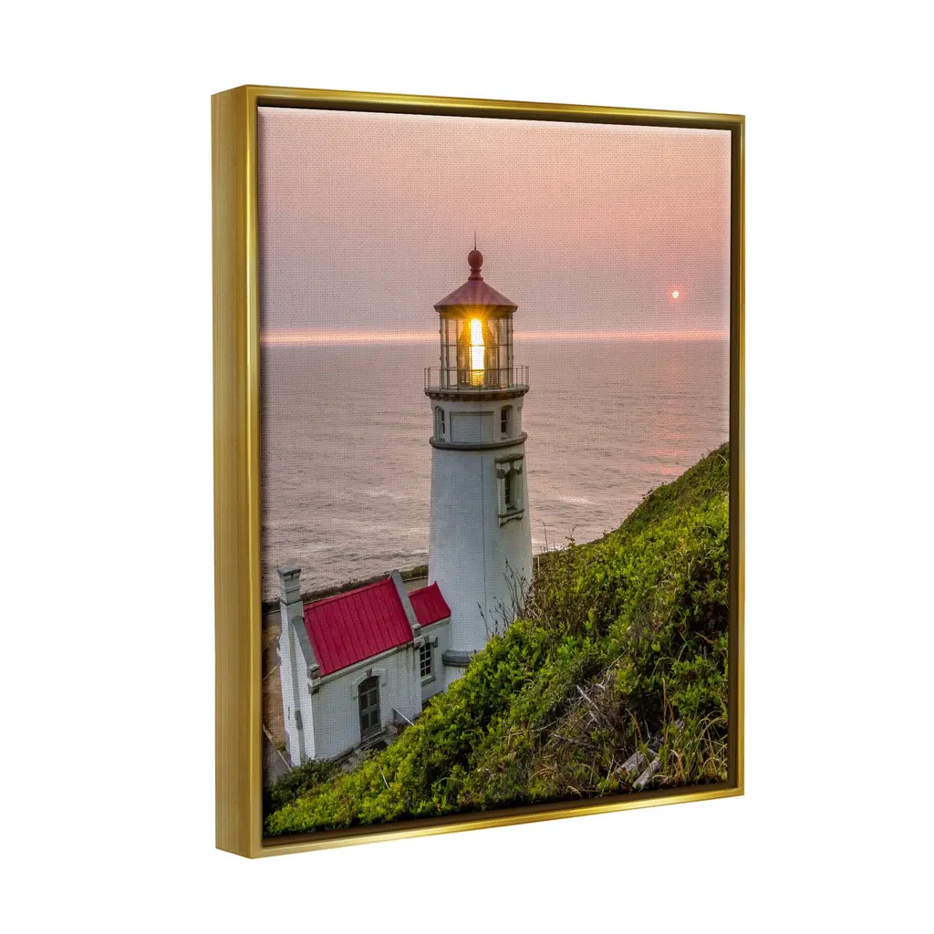 Stupell Lighthouse At Sunset Framed Floater Canvas Wall Art Design By Jeff Poe - 25 X 31 - Gold