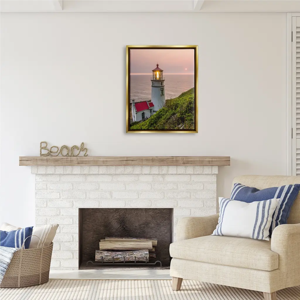 Elevate your home or office to the next level with Stupell Framed Floating Canvas Wall Art. Our premium hand-stretched canvas is mounted securely into a sturdy lightweight frame. The museum-style gap between the wrapped canvas and the box frame gives the illusion of floating artwork. Stupell Wall Art is made in the USA.Features: Dimensions: 17 x 1.7 x 21 Frame, 16 x 1.5 x 20 Canvas ArtFloating Frame Sizes Include Standard: 17 x 1.7 x 21 Oversized: 25 x 1.7 x 31Wall Art is Ready to Hang with Hardware Free Hanging. No installation required. For Easy Set Up Lean or Layer Artwork on Shelf or Against Wall.Our elevated 1.7" Thick Floating Frame is the perfect complement to our canvas style Wall Art. We use only the highest quality inks in house with industry leading printing solutions. Canvas is hand stretched over a durable wood foundation and then mounted securly into a Modern Box Frame. Made in the USA.Artwork Relates To: Beacon, Lighthouse, Nautical, Ocean, Sea, Beach, PhotographyDesign by Jeff Poe