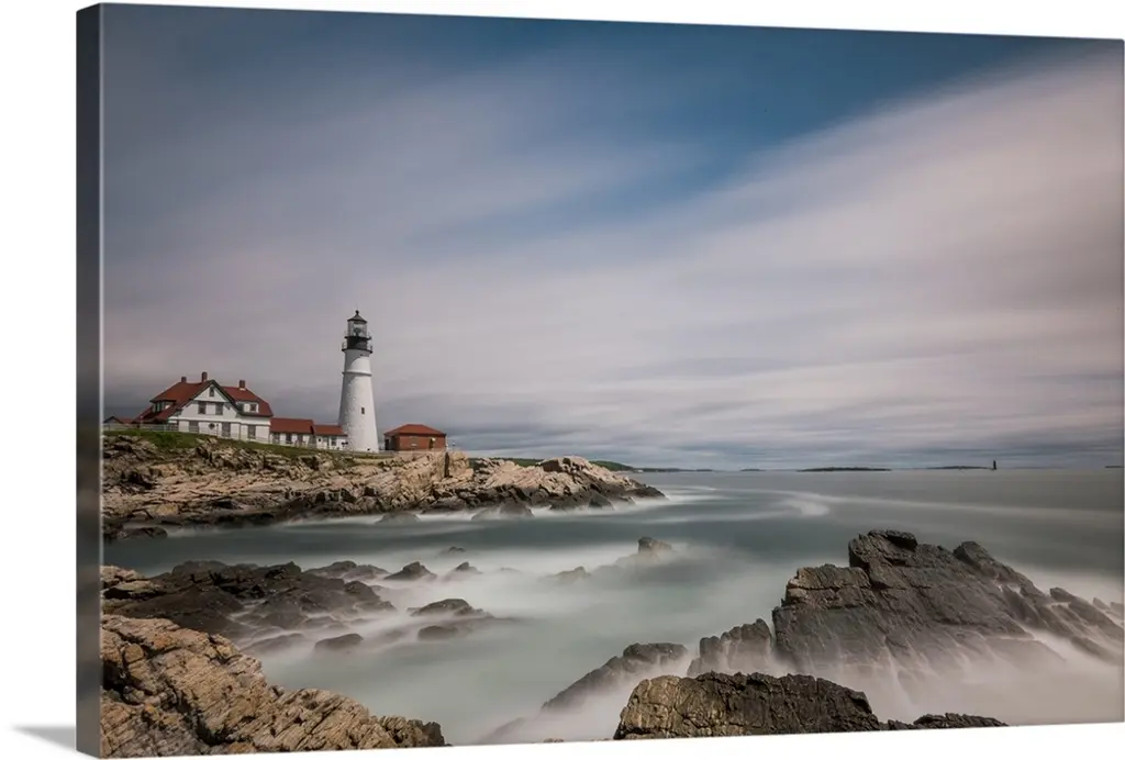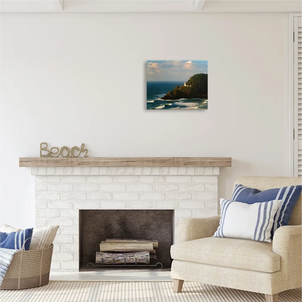 We create our stretched canvas to the highest standards. Using only the highest quality inks and canvas on Mimaki printers, we hand-cut and stretch each piece over a 1.5-inch thick wooden frame for hanging. As a result, the art comes ready to hang on the sturdy ledge with no installation required. Stupell Wall Art is made in the USA.Features: Dimensions: 20 x 1.5 x 16 InchesStretched Canvas Sizes Include Standard: 20 x 1.5 x 16 Large: 30 x 1.5 x 20 X-Large: 40 x 1.5 x 30 Oversized: 48 x 1.5 x 36Wall Art is Ready to Hang with Hardware Free Hanging. No installation required. For Easy Set Up Lean or Layer Artwork on Shelf or Against Wall.Our stretched canvas is created with the highest standards. We use only the highest quality inks and canvas on our in house Mimaki printers, and then hand cut and stretch each piece over a 1.5 inch thick wooden frame for hanging. Made In USA.Artwork Relates To: Nature, Outdoors, Sea, Water, Beacon, Building, Lighthouse, Scenery, CliffDesign by Dennis Frates