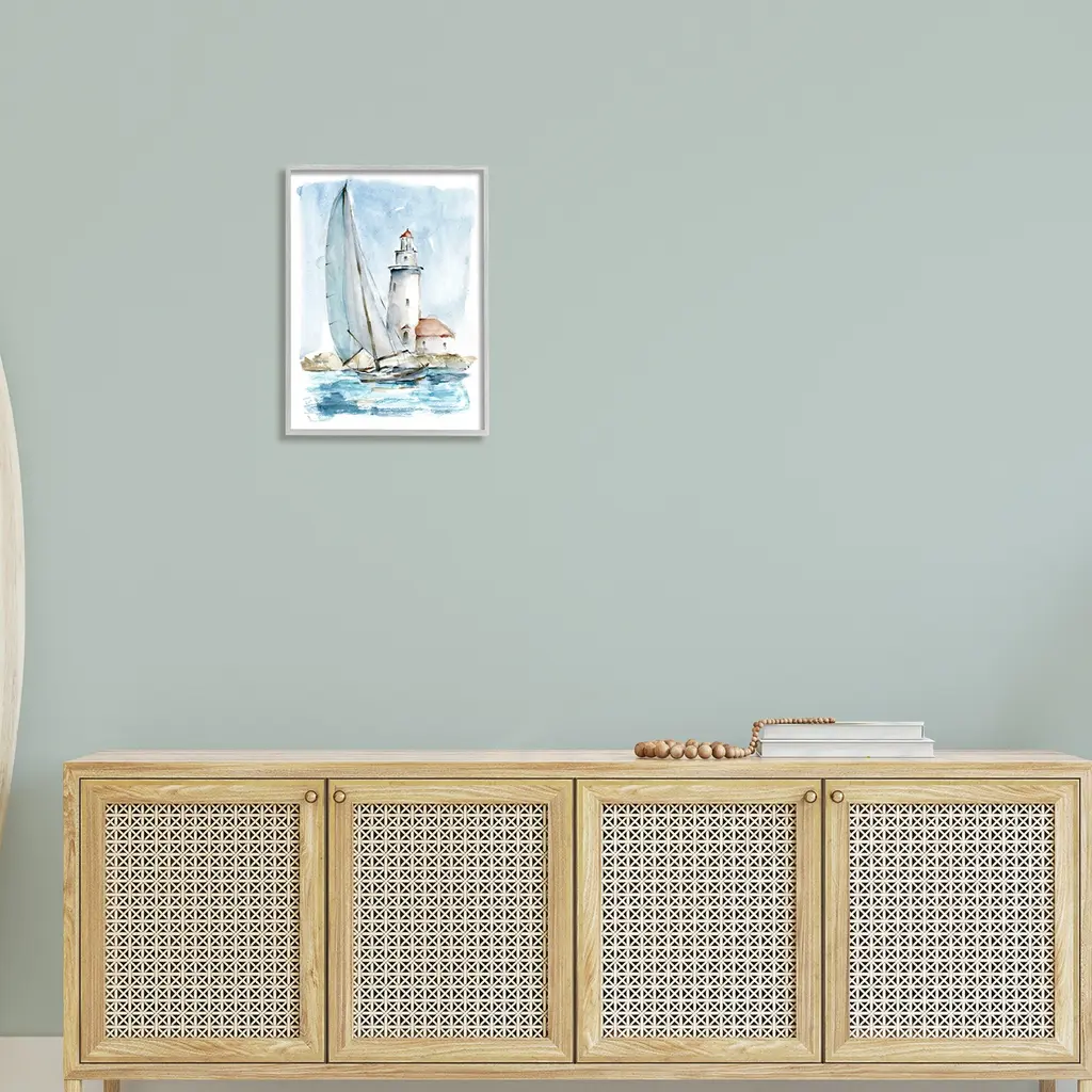 Stupell Lighthouse Tower Beacon Sea Sail Boat Nautical Outdoors Framed Wall Art, Design By Ethan Harper - Blue - 16 X 20 - Grey