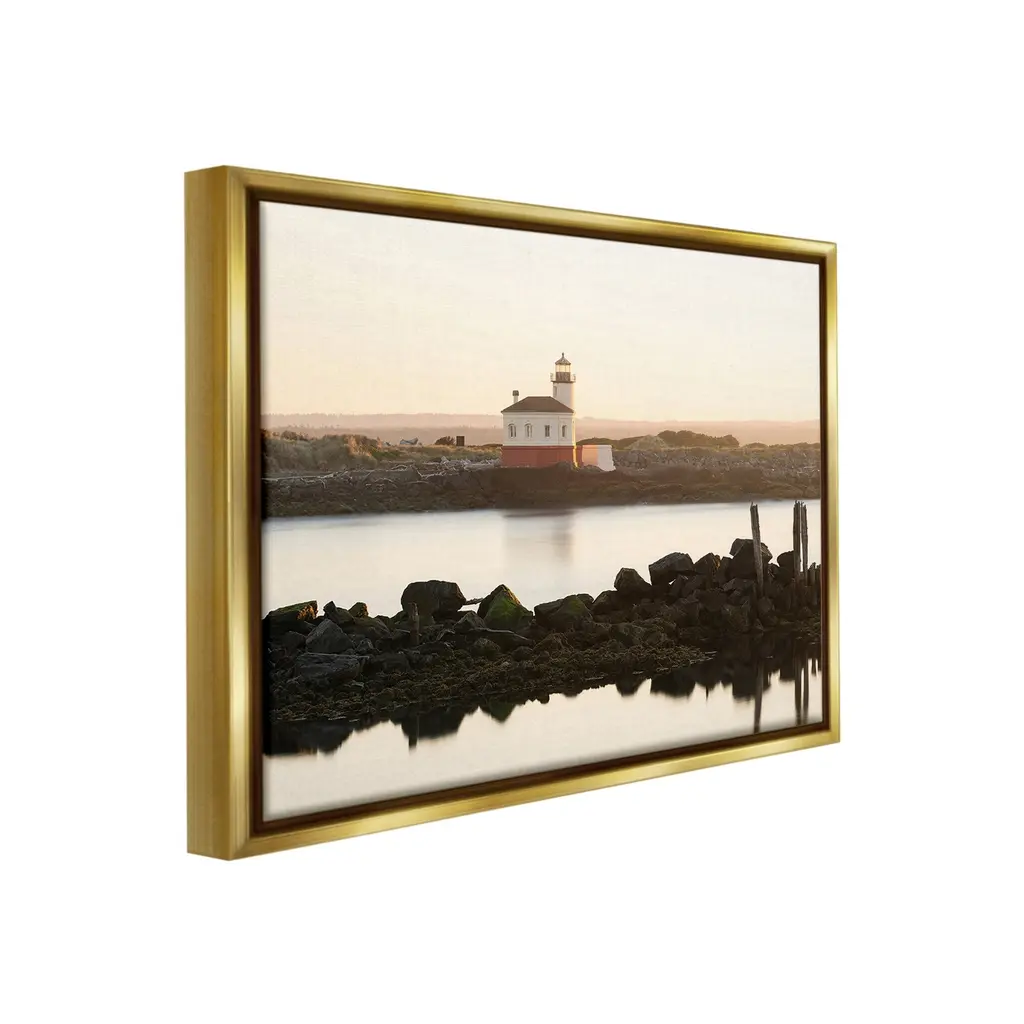 Elevate your home or office to the next level with Stupell Framed Floating Canvas Wall Art. Our premium hand-stretched canvas is mounted securely into a sturdy lightweight frame. The museum-style gap between the wrapped canvas and the box frame gives the illusion of floating artwork. Stupell Wall Art is made in the USA.Features: Dimensions: 21 x 1.7 x 17 Frame, 20 x 1.5 x 16 Canvas ArtFloating Frame Canvas Products are available in sizes 21"x17" and 31"x25". All Floating Frame Canvas Products have a 1.7" Depth.Wall Art is Ready to Hang with Hardware Free Hanging. No Installation required. For Easy Set Up Lean or Layer Artwork on Shelf or Against Wall. Artwork is Permently Fixed into the Frame.Our elevated 1.7" Thick Floating Frame is the perfect complement to our canvas style Wall Art. We use only the highest quality inks in house with industry leading printing solutions. Canvas is hand stretched over a durable wood foundation and then mounted securly into a Modern Box Frame. Made in the USA.Artwork Relates To: Scenery, Water, Sea, Shoreline, Coast, Sky, Horizon, Rock, Beach, Marine, Nautical, Lighthouse, Beacon, SunriseDesign by Richard Wong