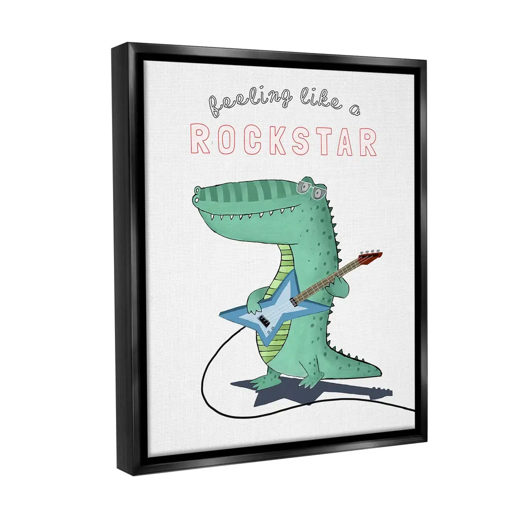 Elevate your home or office to the next level with Stupell Framed Floating Canvas Wall Art. Our premium hand-stretched canvas is mounted securely into a sturdy lightweight frame. The museum-style gap between the wrapped canvas and the box frame gives the illusion of floating artwork. Stupell Wall Art is made in the USA.Features: Dimensions: 17 x 1.7 x 21 Frame, 16 x 1.5 x 20 Canvas ArtFloating Frame Canvas Products are available in sizes 17"x21" and 25"x31". All Floating Frame Canvas Products have a 1.7" Depth.Wall Art is Ready to Hang with Hardware Free Hanging. No Installation required. For Easy Set Up Lean or Layer Artwork on Shelf or Against Wall. Artwork is Permently Fixed into the Frame.Our elevated 1.7" Thick Floating Frame is the perfect complement to our canvas style Wall Art. We use only the highest quality inks in house with industry leading printing solutions. Canvas is hand stretched over a durable wood foundation and then mounted securly into a Modern Box Frame. Made in the USA.Artwork Relates To: Animal, Alligator, Crocodile, Music, Musician, Guitar, Feeling Like a RockstarDesign by Carla Daly