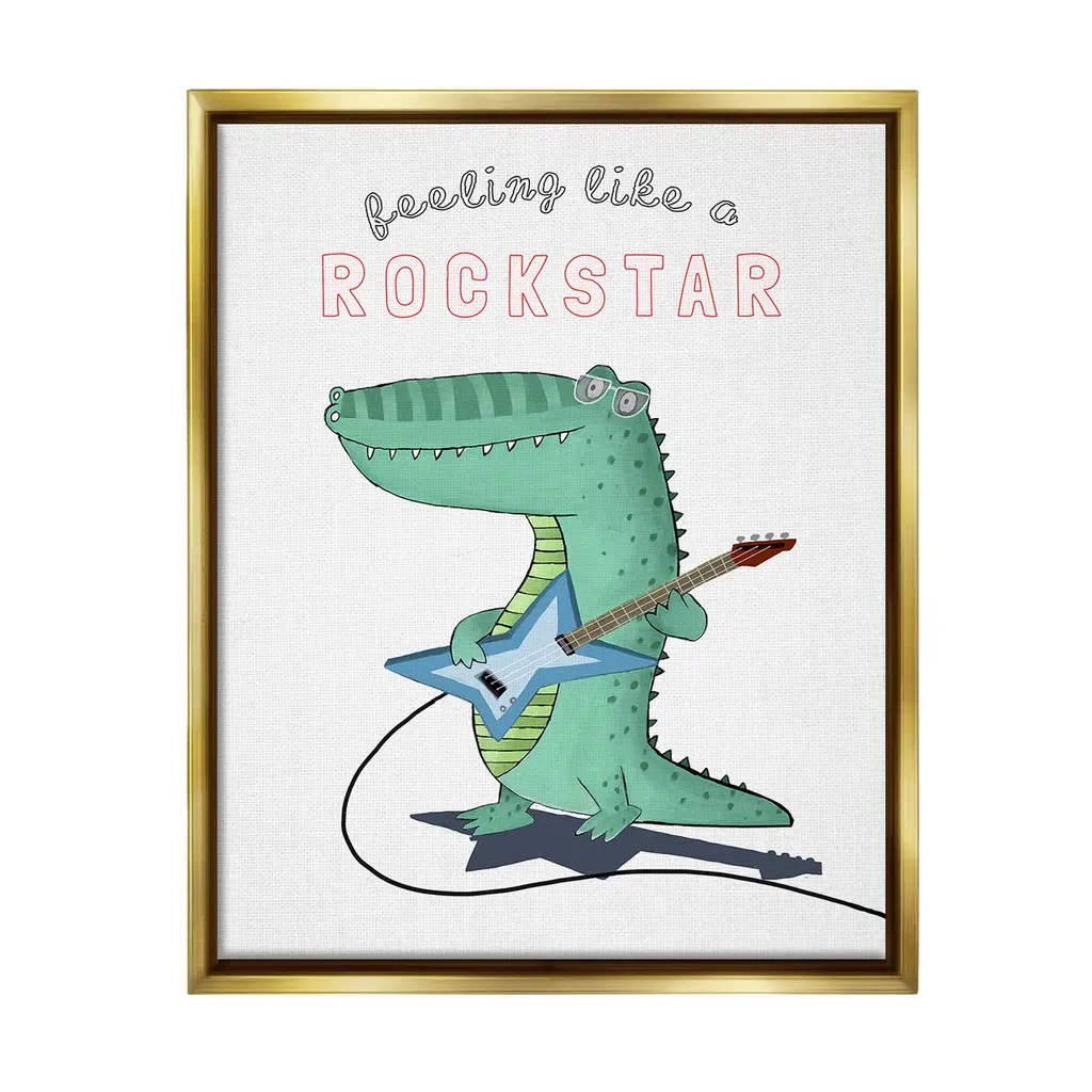Add dimension to any room with our textured Framed Giclee Artwork. Our framed artwork is securely mounted into a 1.5-inch thick wood grain frame and ready to hang. Frames are available in three alluring styles: black, gray farmhouse and white. In addition, you should check out our oversized options if you want a statement piece. Stupell Wall Art is made in the USA.Features: Dimensions: 11 x 1.5 x 14 FramedFramed Giclee Products are available in the sizes 11"x14", 16"x20" or 24"x30". All Framed Giclee Products have a 1.5" Depth. Wall Art is Ready to Hang with Hardware Free Hanging. No installation required. For Easy Set Up Lean or Layer Artwork on Shelf or Against Wall.Our giclée prints are carefully mounted on a durable MDF backing, and then perfectly finished in a 1.5 inch thick woodgrain frame. Mounted frame colors include black, gray farmhouse and white. Made In USA.Artwork Relates To: Animal, Alligator, Crocodile, Music, Musician, Guitar, Feeling Like a RockstarDesign by Carla Daly