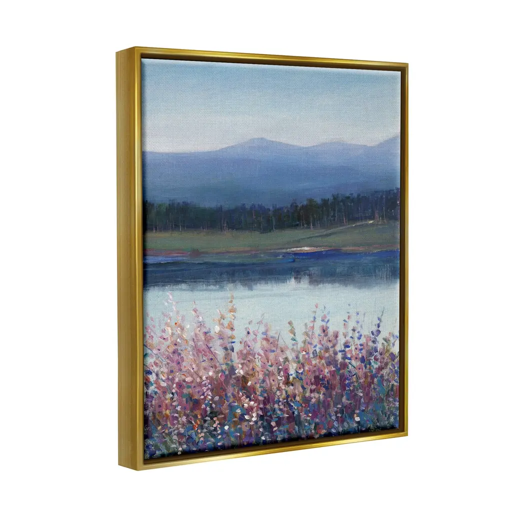 Stupell Lilacs By Lake Mountain Landscape Framed Floater Canvas Wall Art By Tim O'toole - 24 X 30 - Gold