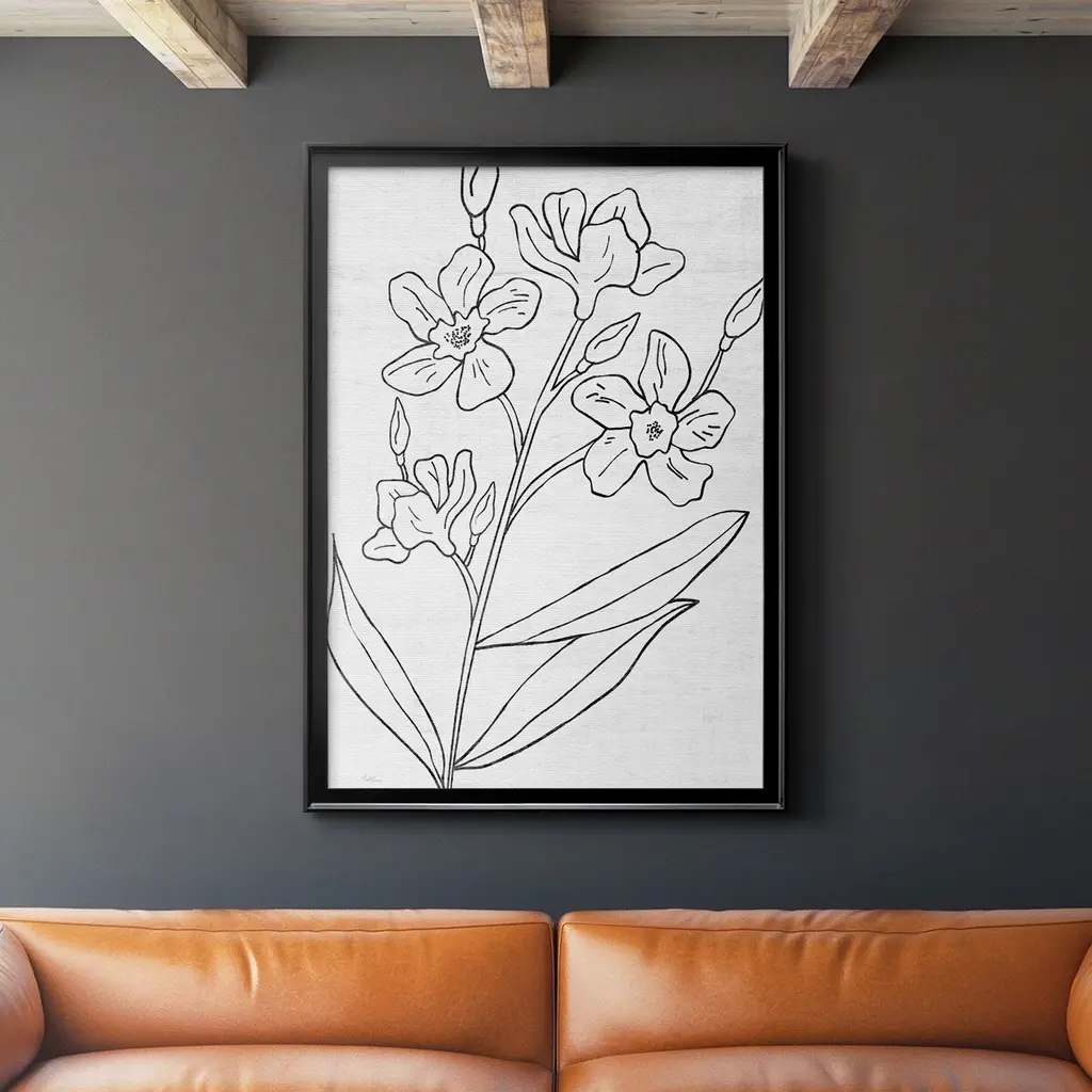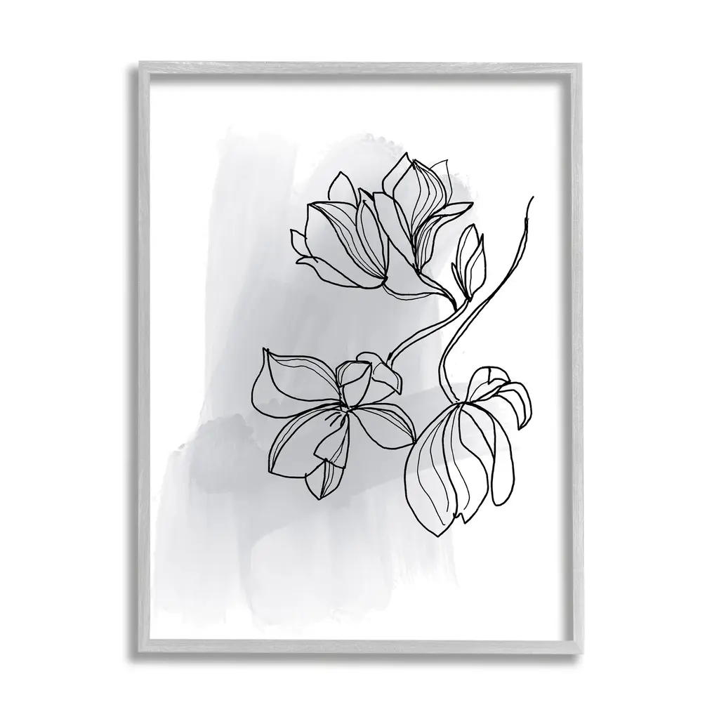 Stupell Lily Floral Line Drawing Over Abstract Brush Pattern Framed Wall Art - Black - 16 X 20 - Black