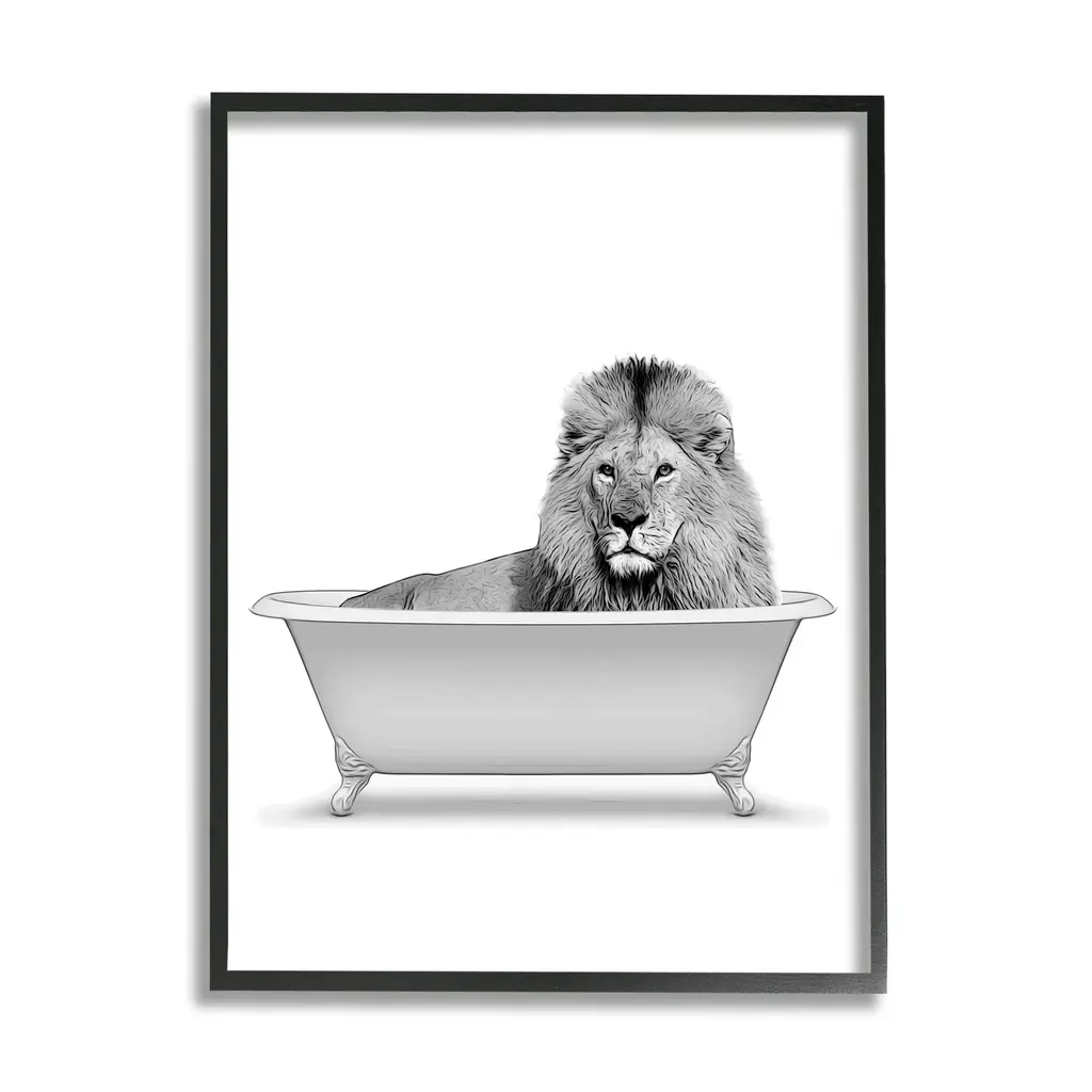 Add dimension to any room with our textured Framed Giclee Artwork. Our framed artwork is securely mounted into a 1.5-inch thick wood grain frame and ready to hang. Frames are available in three alluring styles: black, gray farmhouse and white. In addition, you should check out our oversized options if you want a statement piece. Stupell Wall Art is made in the USA.Features: Dimensions: 11 x 1.5 x 14 FramedFramed Giclee Sizes Include Standard: 11 x 1.5 x 14 Large: 16 x 1.5 x 20 Oversized: 24 x 1.5 x 30Wall Art is Ready to Hang - No Installation or Hardware Needed. For Easy Set Up Lean or Layer Artwork on Shelf or Against Wall.Our giclée prints are carefully mounted on a durable MDF backing, and then perfectly finished in a 1.5 inch thick woodgrain frame. Mounted frame colors include black, gray farmhouse and white. Made In USA.Artwork Relates To: Animal, Mammal, Wildlife, Bathroom, LionDesign by Annalisa Latella