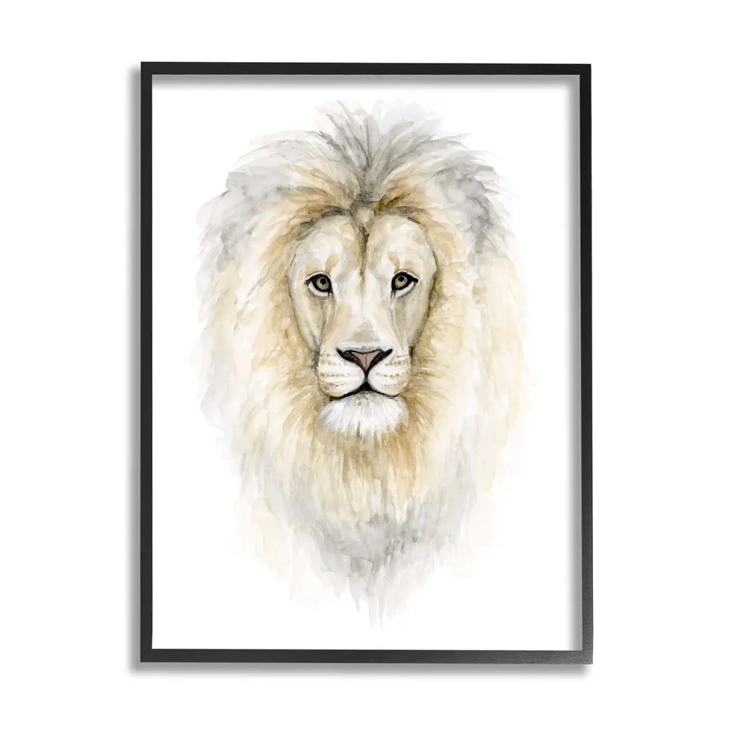 Stupell Lion Mane Watercolor Portrait Kids' Nursery Safari Animal Framed Wall Art - Yellow - 16 X 20 - Grey