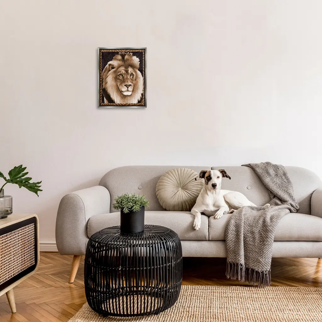 Elevate your home or office to the next level with Stupell Framed Floating Canvas Wall Art. Our premium hand-stretched canvas is mounted securely into a sturdy lightweight frame. The museum-style gap between the wrapped canvas and the box frame gives the illusion of floating artwork. Stupell Wall Art is made in the USA.Features: Dimensions: 17 x 1.7 x 21 Frame, 16 x 1.5 x 20 Canvas ArtFloating Frame Canvas Products are available in sizes 17"x21" and 25"x31". All Floating Frame Canvas Products have a 1.7" Depth.Wall Art is Ready to Hang with Hardware Free Hanging. No Installation required. For Easy Set Up Lean or Layer Artwork on Shelf or Against Wall. Artwork is Permently Fixed into the Frame.Our elevated 1.7" Thick Floating Frame is the perfect complement to our canvas style Wall Art. We use only the highest quality inks in house with industry leading printing solutions. Canvas is hand stretched over a durable wood foundation and then mounted securly into a Modern Box Frame. Made in the USA.Artwork Relates To: Animal, Lion, Mammal, Wildlife, Abstract, Modern, Geometric, PatternDesign by Lucca Sheppard